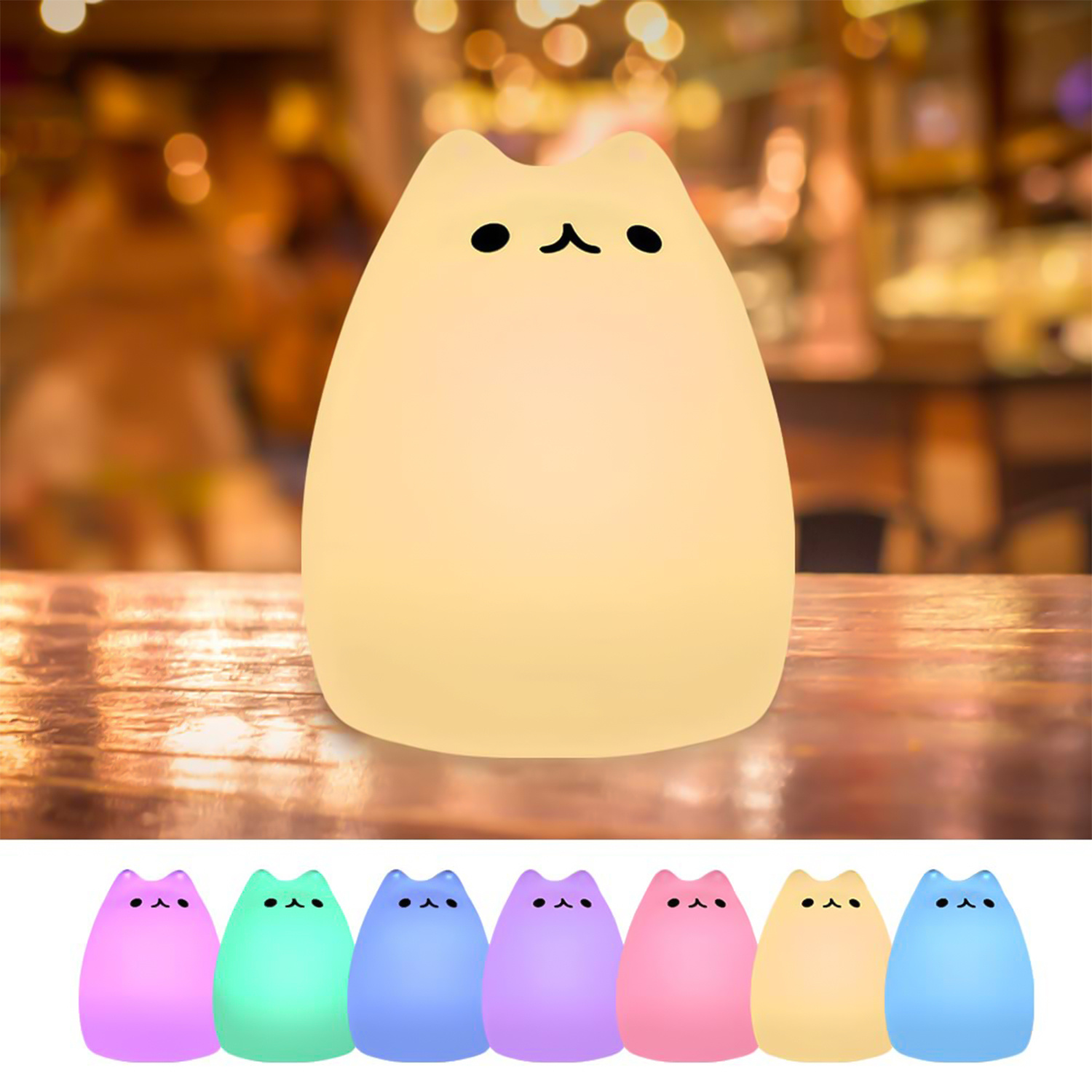 RGB-LED-Nachtlicht für Kinder, Kätzchen, Katze, USB wiederaufladbar, 16 Farben, Silikon-Touch, Weiß x 1