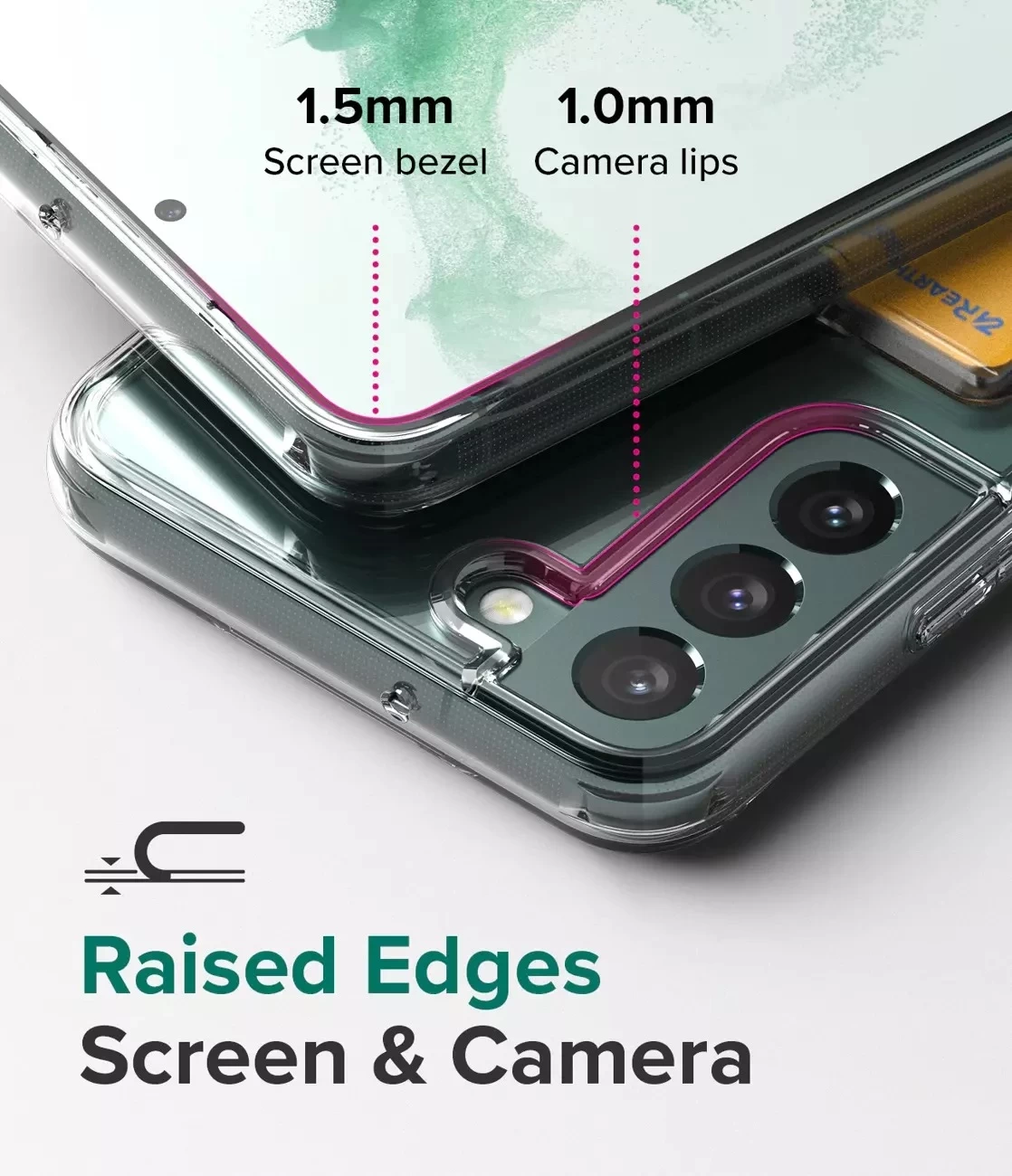 Die Ringke Fusion Card Hybrid-Klarsichthülle bietet besseren Schutz für Ihr Samsung Galaxy S22 + (S22 Plus) und vollen Bedienkomfort. Das Etui hat ein integriertes Fach für eine Karte oder Dokumente – so können Sie zum Beispiel im Geschäft bezahlen, ohne Ihr Portemonnaie zu zücken. Es unterstützt auch kabelloses Laden . Die Hülle für das Samsung Galaxy S22 + besteht aus strapazierfähigen Materialien , die das Telefon vor Stürzen schützen.