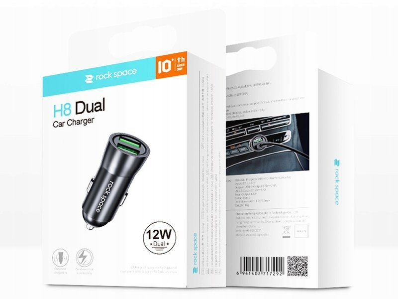 Das Rock Autoladegerät aus der H8 Dual Car Charger Serie ist ein hochwertiges Produkt aus hochwertigem Aluminium, das sehr edel und sehr stylisch aussieht. Es unterstützt das Laden mit einem Strom von 2,4 A, was es zu einem äußerst effektiven und schnellen Autoladegerät macht.