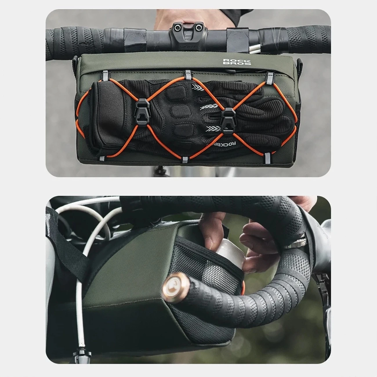• Rockbros 30110054001 Lenkertasche: 2,2 l Fassungsvermögen, perfekt für Fahrradlicht, Multitool und Powerbank. Stabil, einfach zu montieren, mit Seitentaschen und Reflektoren. Sie können es auf der Schulter tragen. Grüne Farbe.