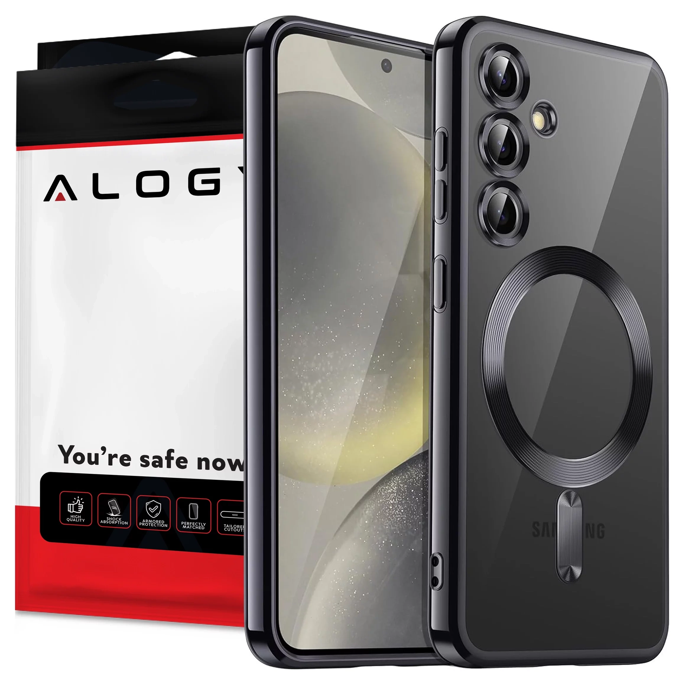 ✅ Die Alogy MagSafe Glamour Luxushülle für das Samsung Galaxy S25 Plus bietet erstklassigen Schutz und eine perfekte Passform dank eines flexiblen Polyurethanrahmens. Die schwarze Oberfläche verleiht Eleganz und schützt Kamera und Linsen effektiv, während das schlanke Design das Smartphone nicht unnötig vergrößert.