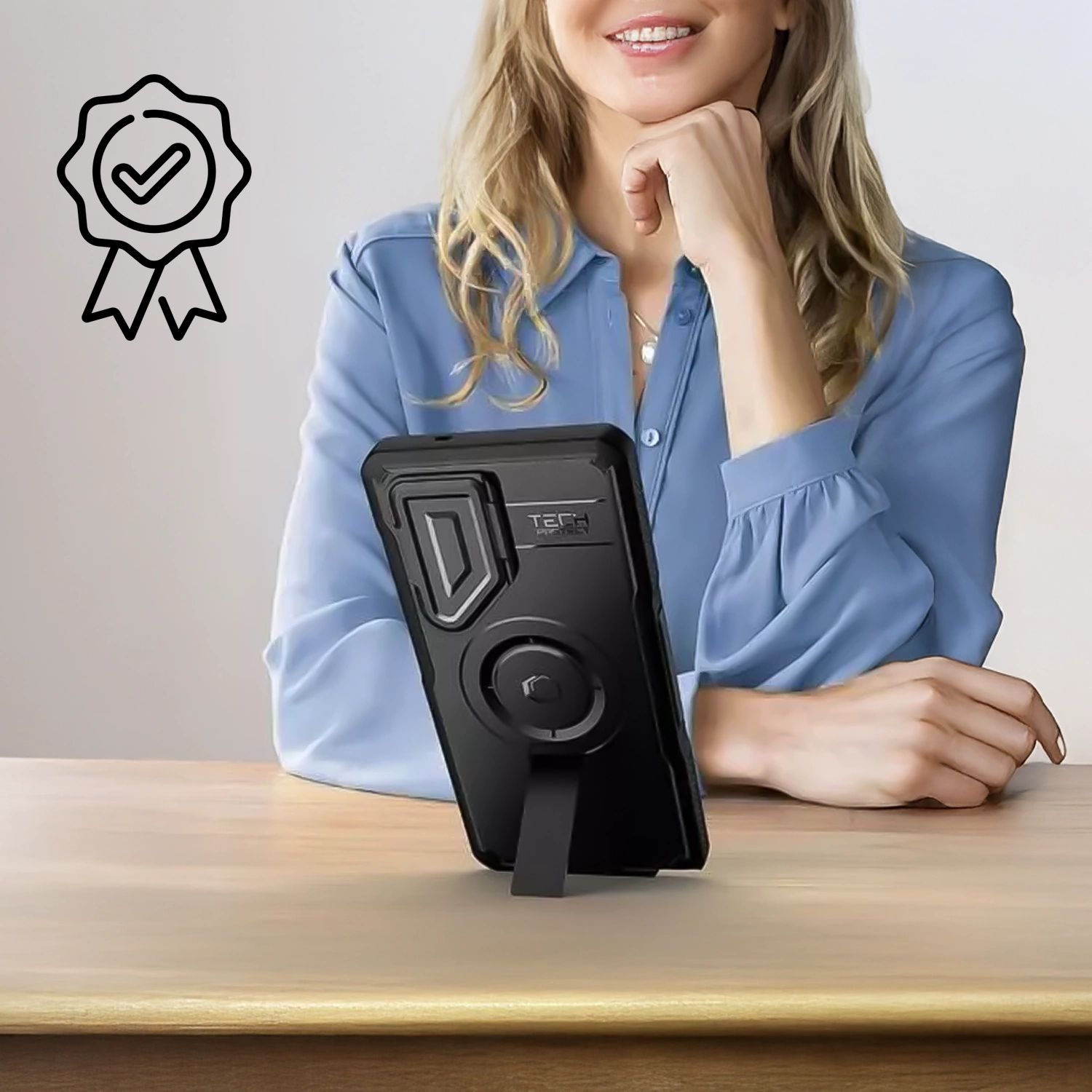 ✅ Zusätzlich verfügt es über einen klappbaren KickStand-Ständer und einen integrierten Displayschutz . Zusätzliche Eckverstärkungen und schützende Luftpolster sorgen für eine effektive Dämpfung bei jedem Sturz.