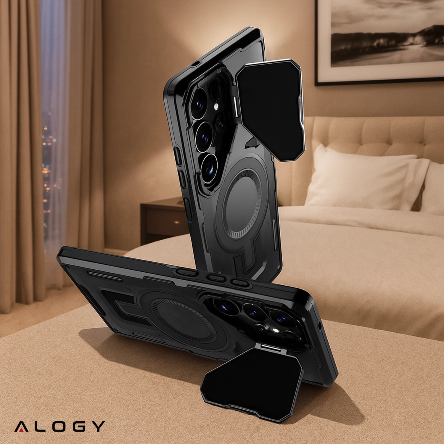 Samsung Galaxy S25 Ultra Schutzhülle mit MagSafe-Verstärkung, verstärktem Linsenschutz und Standfunktion, Alogy HeavyDuty Mag™️ Schwarz x 1