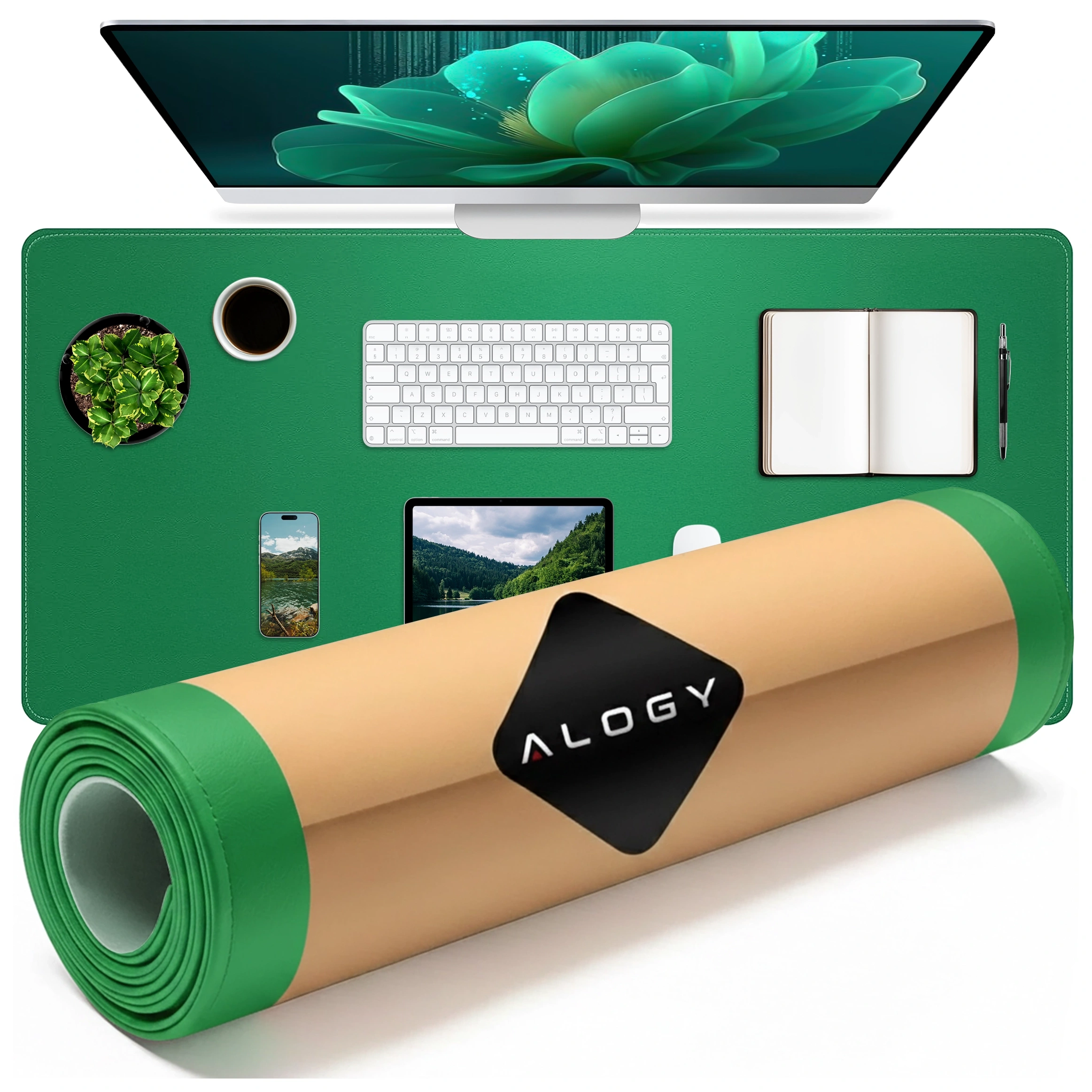 Schreibtischunterlage 90 × 45 cm – rutschfeste Schutzmatte aus elegantem PU-Ökoleder, für Maus und Tastatur, stilvoll und langlebig – Alogy WorkMat™ Grün x 1