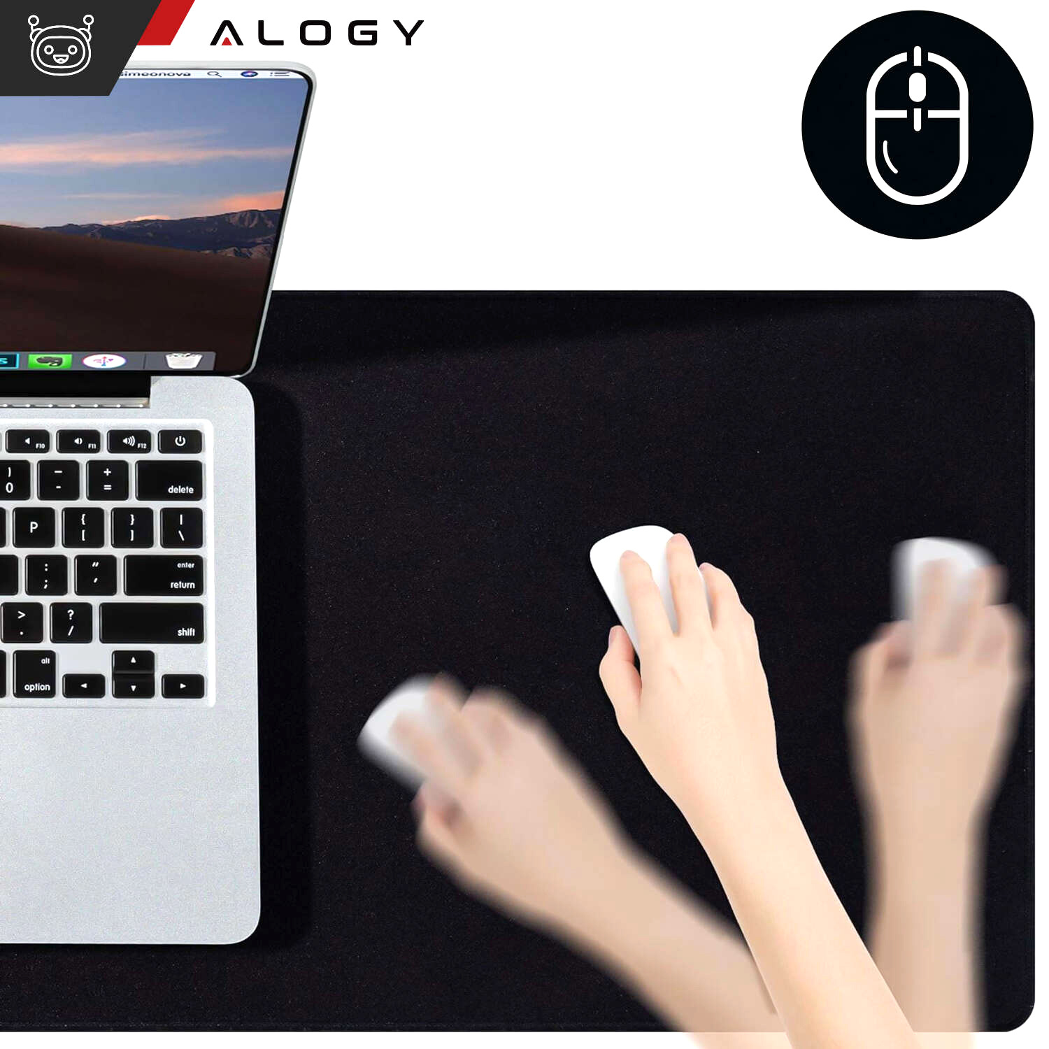 Schreibtischunterlage für Maus und Tastatur. Rutschfeste Schutzmatte XL 80 x 40 cm Alogy Schwarz x 1
