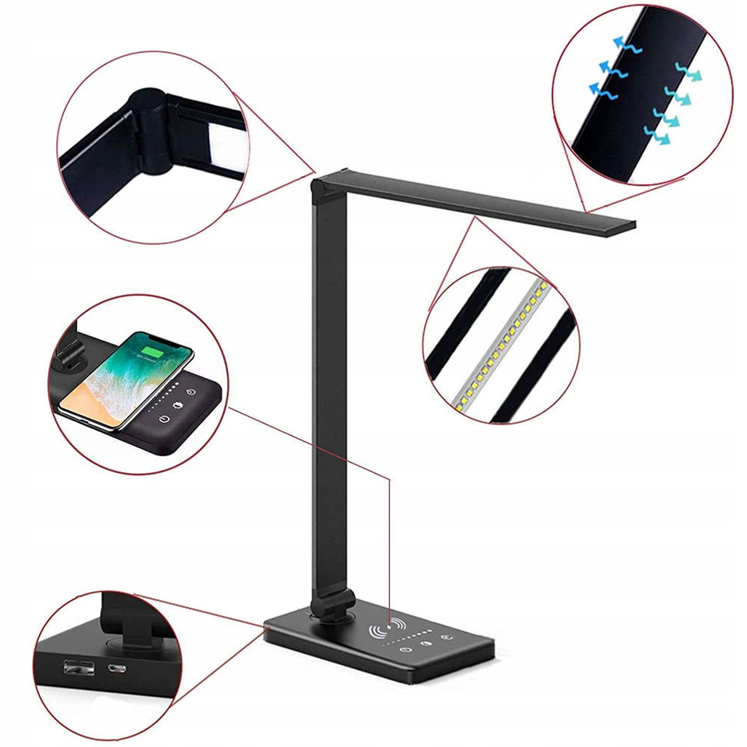 Die LED-Schreibtischlampe ist ein Accessoire, das in jedem Zuhause und an jedem Arbeitsplatz funktioniert. Es wurde mit einem induktiven Ladegerät ausgestattet, mit dem Sie Ihr Telefon aufladen können.