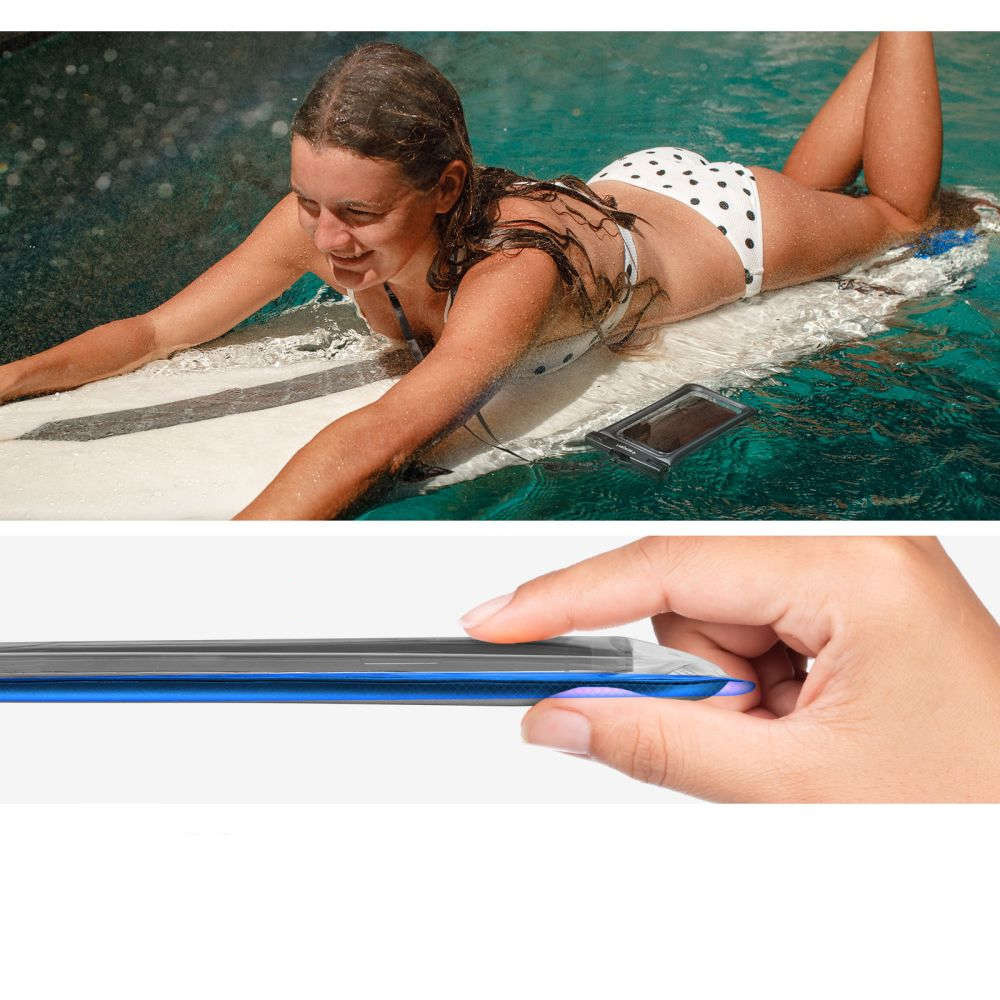 Das Wassergehäuse hält mobile Geräte bis zu 8,2 Zoll - funktioniert mit Touchscreens bis zu 6,9 Zoll. Perfekt für Wassersportarten wie Tauchen oder Schwimmen. Dank des transparenten Fensters können wir unter Wasser fotografieren. Darüber hinaus hat der Koffer Seiten, die mit Luft gefüllt sind, wodurch die Möglichkeit des Verlusts oder Ertrinkens minimiert wird.