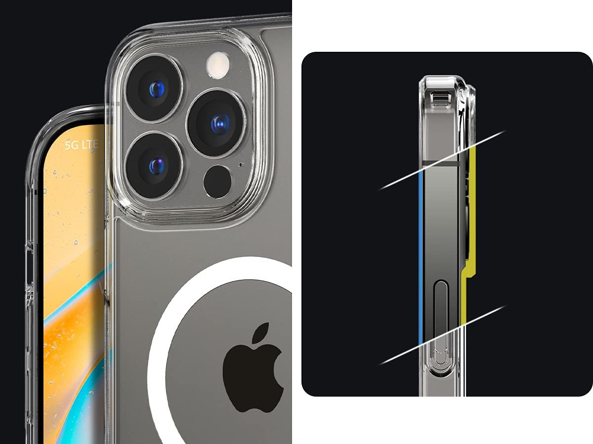 Die perfekt für das Apple iPhone 13 Pro entwickelte Hülle der Spigen Ultra Hybrid Mag-Serie ist ein Premium-Produkt aus zwei Materialien, die zusammenarbeiten, um ein Höchstmaß an Schutz zu bieten. Die Rückseite des Gehäuses besteht aus strapazierfähigem Polycarbonat, während der Rahmen aus flexiblem und dennoch widerstandsfähigem Polyurethan besteht, das das Gehäuse zusätzlich verstärkt.