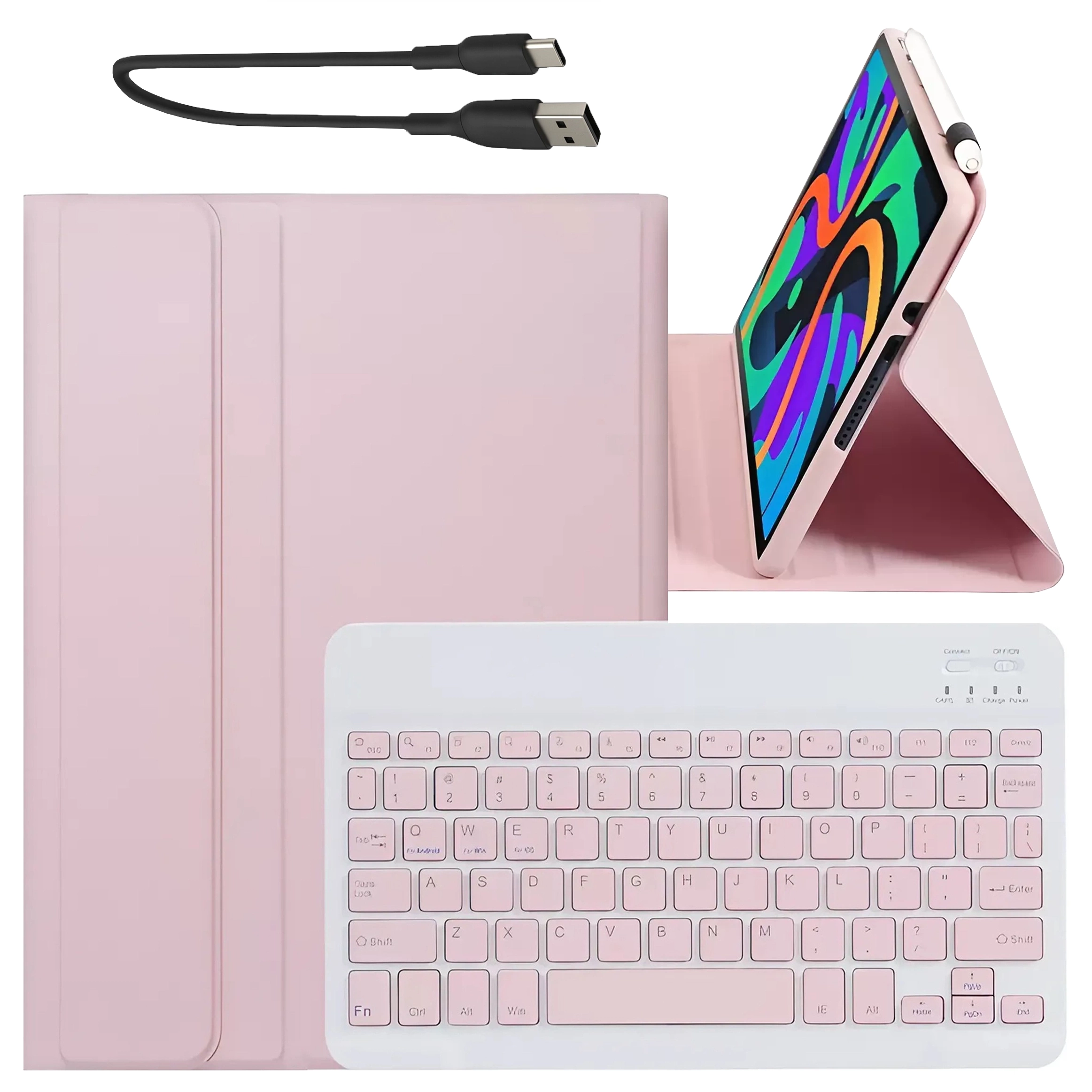 Der Hauptvorteil ist die magnetische, kabellose Bluetooth-Tastatur. Sie können die Tastatur von der Hülle abnehmen und sie allein mit einem Tablet oder einem anderen Bluetooth-fähigen Gerät verwenden .