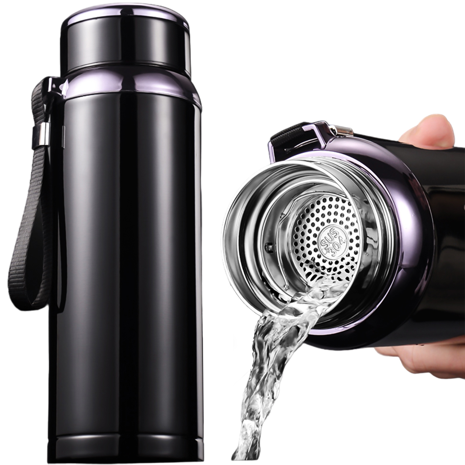 Thermosflasche Thermoflasche 800 ml für Kaffee Tee Yerba Mate LED-Siebschnur Alogy-Display Schwarz x 1