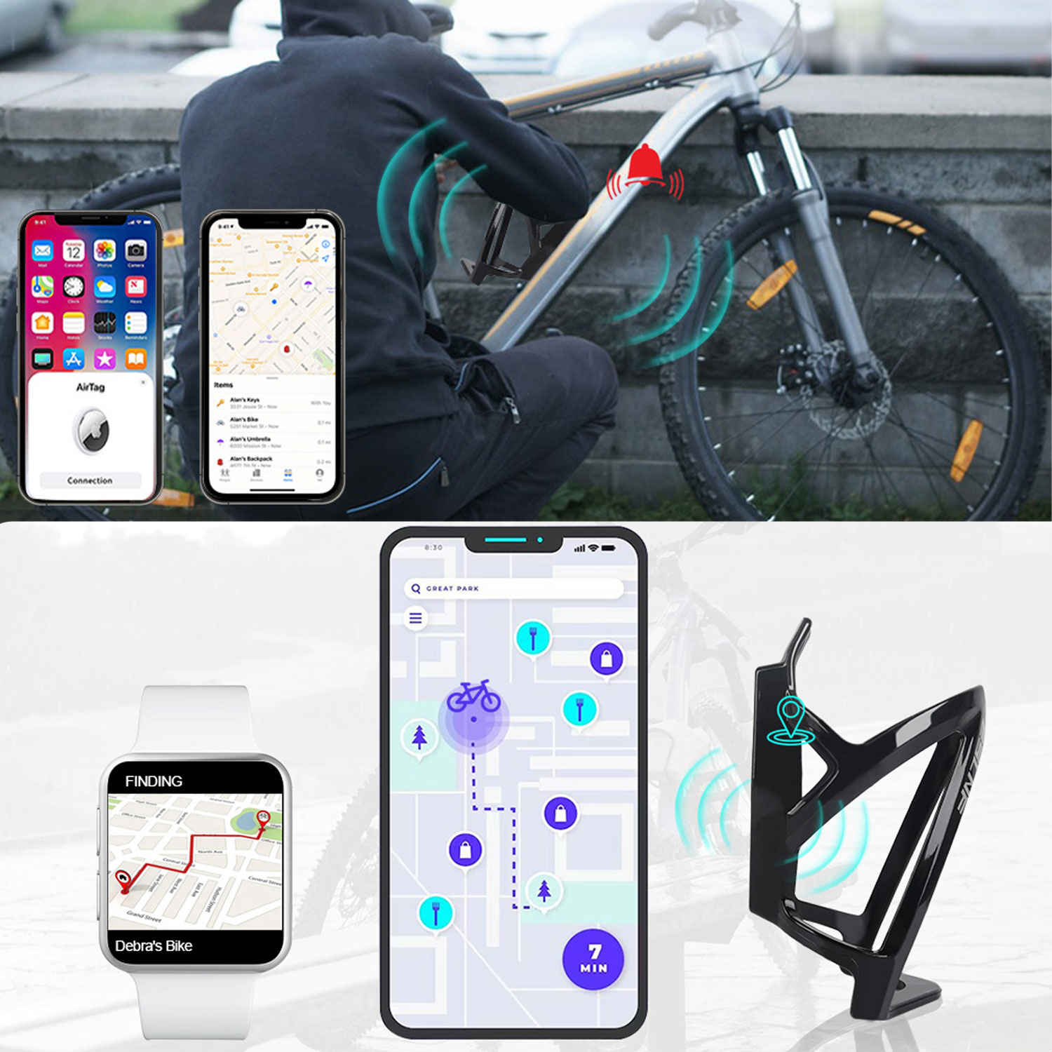 ✅ Der Halter verfügt über einen speziellen Platz für den Airtag-Locator , der eine sichere Aufbewahrung und einfache Ortung des Fahrrads im Falle eines Diebstahls oder Verlusts ermöglicht.