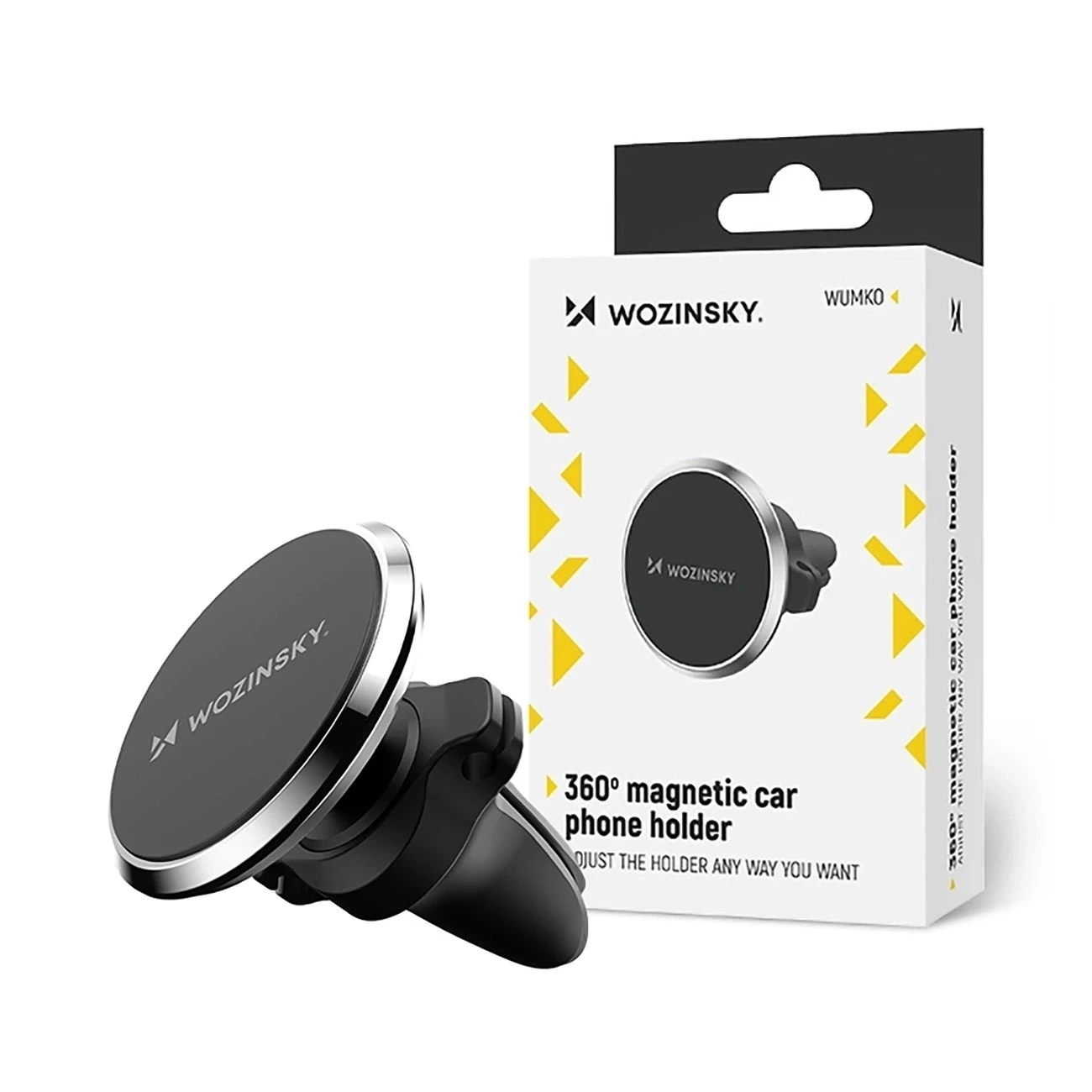 Wozinsky WUMKO to kompaktowy, magnetyczny uchwyt samochodowy, który zapewnia pewność trzymania telefonu w każdych warunkach drogowych. Montowany do kratki nawiewu, nie ogranicza widoczności i oferuje intuicyjną obsługę jedną ręką – bez rozpraszania podczas jazdy.