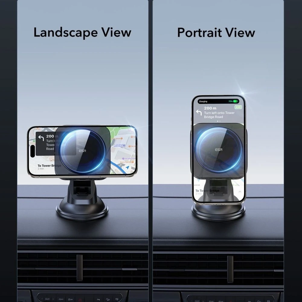 Uchwyt samochodowy ESR HaloLock Qi2 15W MagSafe to nowoczesne rozwiązanie dla kierowców, którzy chcą szybko ładować i bezpiecznie trzymać iPhone’a w zasięgu wzroku. Certyfikowane ładowanie bezprzewodowe Qi2 o mocy 15W gwarantuje szybką i stabilną energię nawet w trasie.