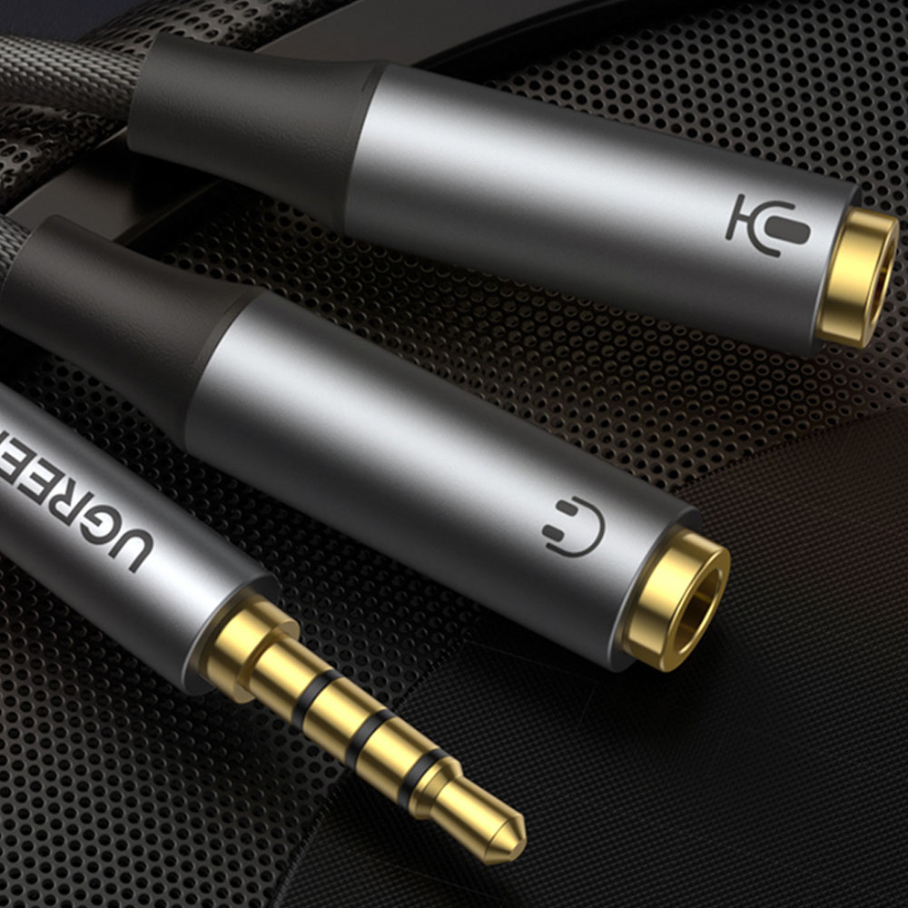 UGREEN AV192 AUX-Audio-Splitter 3,5-mm-Miniklinkenkabel (männlich) zu Kopfhörermikrofon (weiblich), 20 cm (grau) x 1