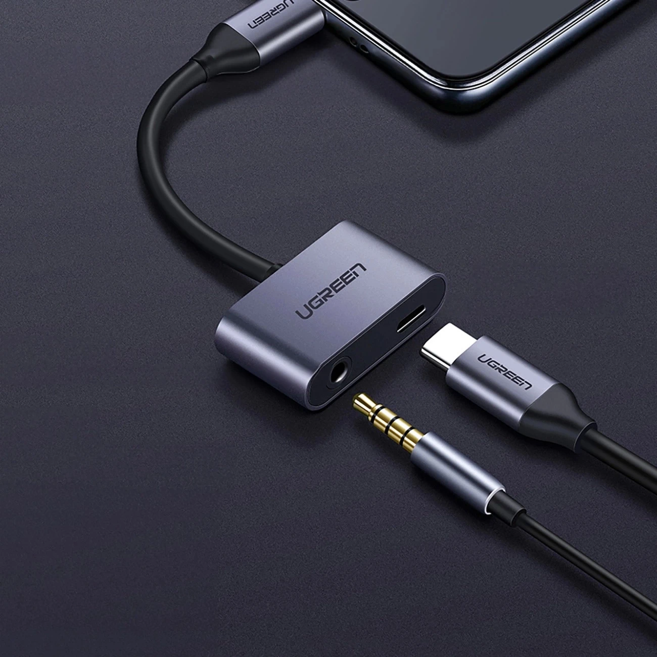 Ugreen CM193 USB-C auf 3,5 mm Mini-Buchse USB-C Ladeadapter Grau x 1