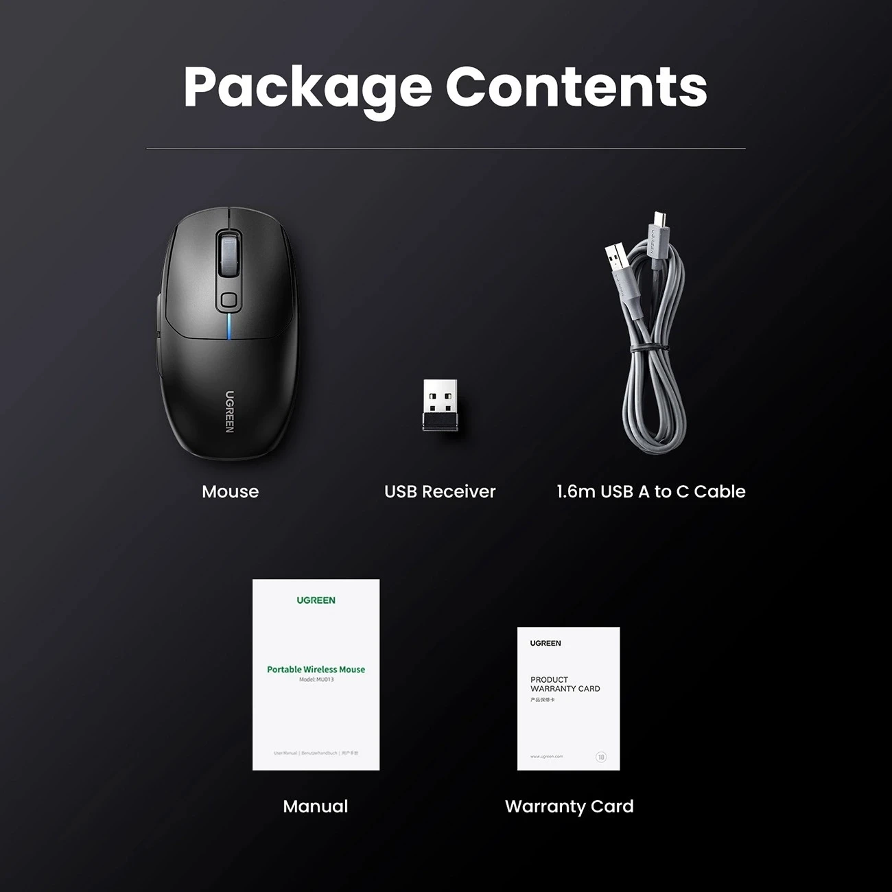UGREEN MU103 KABELLOSE MAUS 2,4 GHz BT 5.0 DPI USB-C SCHWARZ