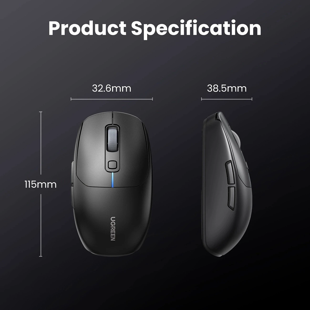 UGREEN MU103 KABELLOSE MAUS 2,4 GHz BT 5.0 DPI USB-C SCHWARZ x 1