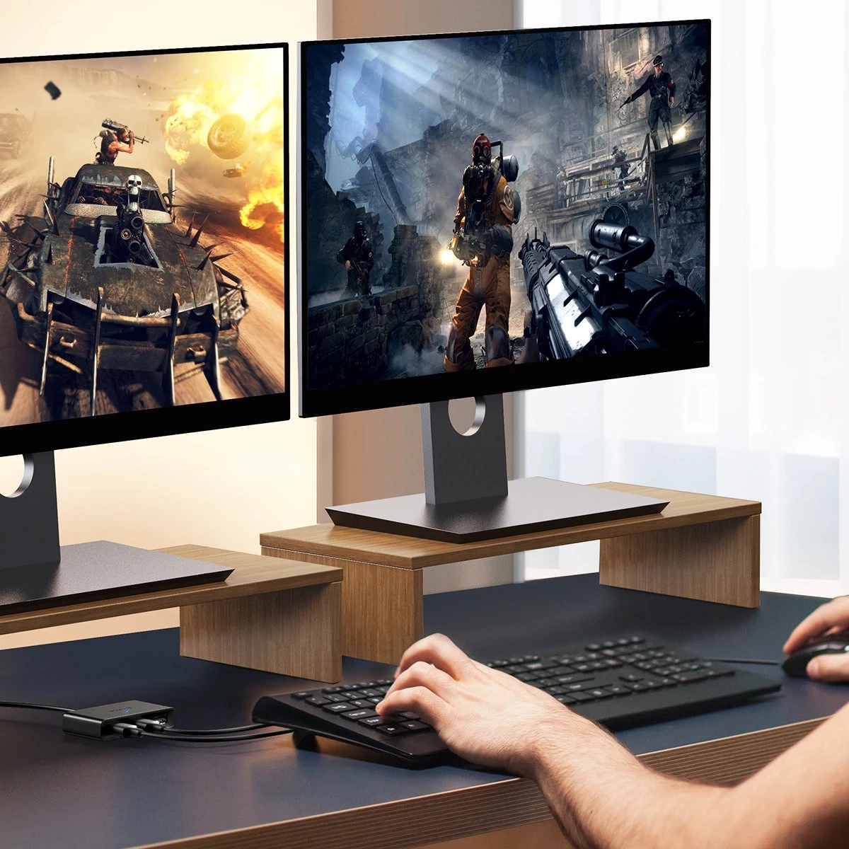 HUB nimmt wenig Platz ein und passt sogar auf einen kleinen Schreibtisch. Das Set enthält ein 1,5 m langes USB-Kabel.