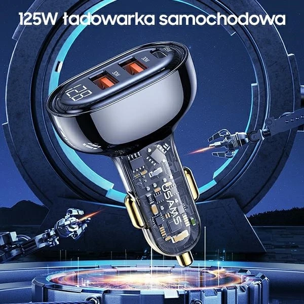 • USAMS Autoladegerät 2xUSB 1xUSB-C 125W Schnellladung