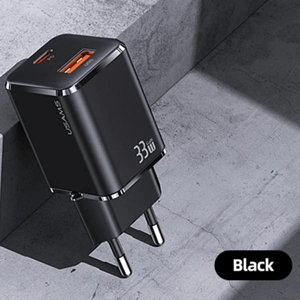 USAMS Wandladegerät 1xUSB-C 1xUSB T43 33W PD3.0 QC3.0 Kabel U63 USB-C zu Lightning schwarz/schwarz USKTZ01 x 1