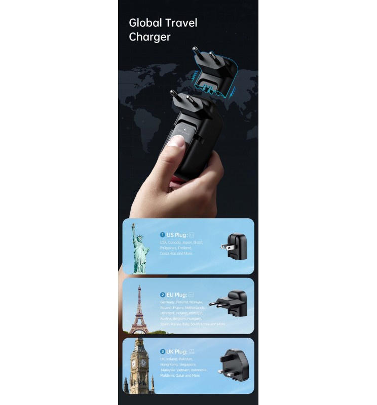 Das Ladegerät besteht aus strapazierfähigem, feuerfestem PC-Material, was sich in seiner Langlebigkeit niederschlägt. Das Produkt zeichnet sich durch ein kompaktes Design aus, sodass Sie es immer dabei haben können. Seine originelle Form lässt es extrem stylisch aussehen, garantiert aber auch eine stabilere Ladung.
