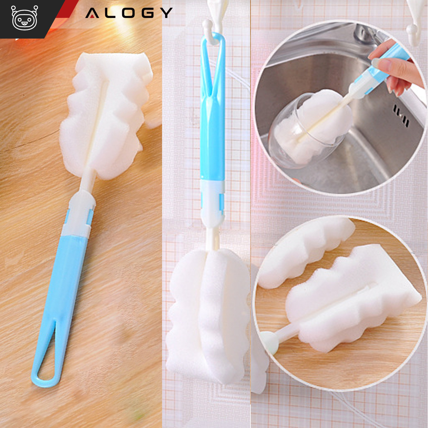 Die Waschschwammbürste von Alogy ist dank ihrer Vielseitigkeit ideal zum Reinigen von Flaschen, Gläsern, Bechern, Gläsern, Thermoskannen und anderen Arten von Gefäßen.