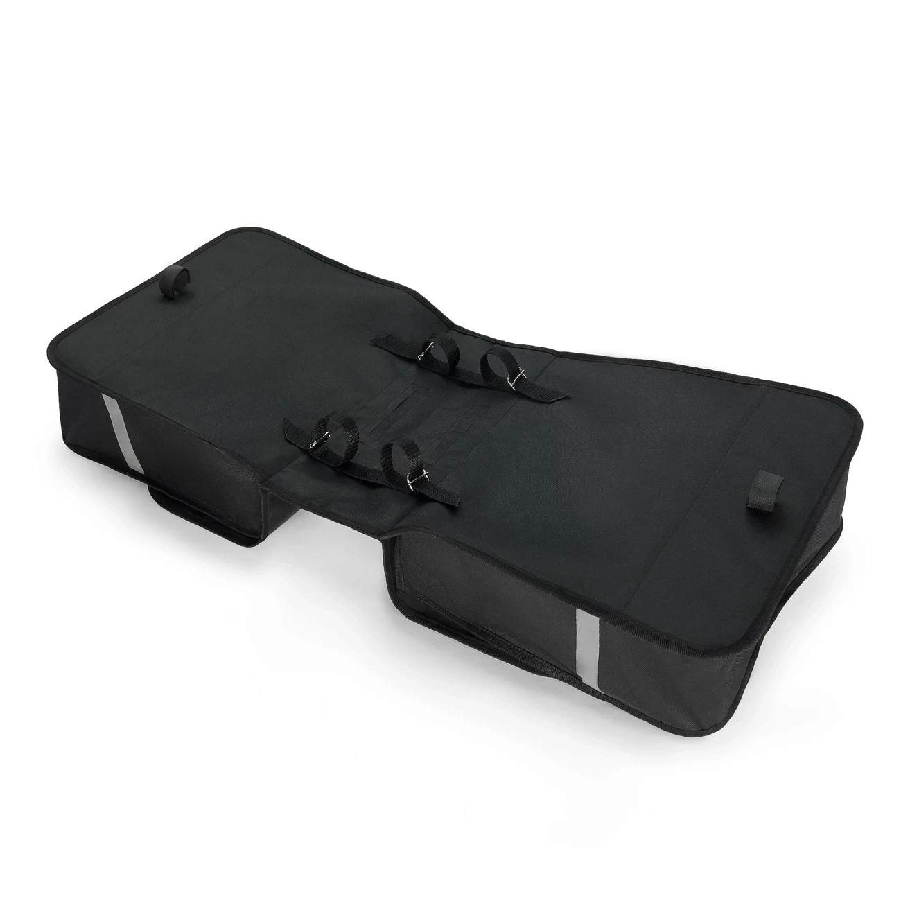 Tasche für ein Doppelfahrrad Wozinsky WBB34BK - CitybikeDas Anbringen der Wozinsky WBB34BK-Tasche ist einfach. Es handelt sich um ein universelles Riemensystem, das an jeden Stiefel passt und Sie benötigen kein Werkzeug. Legen Sie die Tasche über das Fahrrad, ordnen Sie sie symmetrisch auf dem Gepäckträger an und befestigen Sie sie mit Klettverschluss. Bereit!