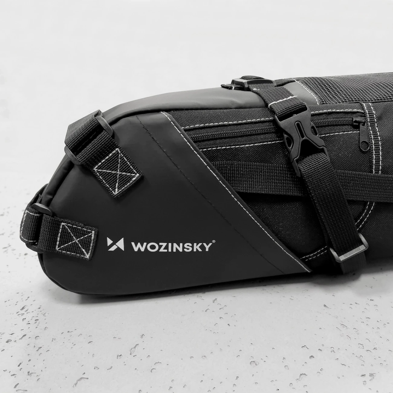Nachdem Sie die Tasche unter dem Sattel befestigt haben, haben Sie bequemen Zugriff auf Ihre Sachen . Sie müssen nur noch die seitlichen Schnallen lösen – fertig! Die Wozinsky WBB9BK Satteltasche hat ein sehr durchdachtes Design . Auf der Außenfläche der Packtasche finden Sie mehrere kleine Taschen, in denen Sie beispielsweise Schlüssel oder ein Telefon verstecken können . Wichtig ist, dass die Satteltasche auch über Elemente verfügt, an denen Sie beispielsweise eine Batterie-Rückleuchte aufhängen können.