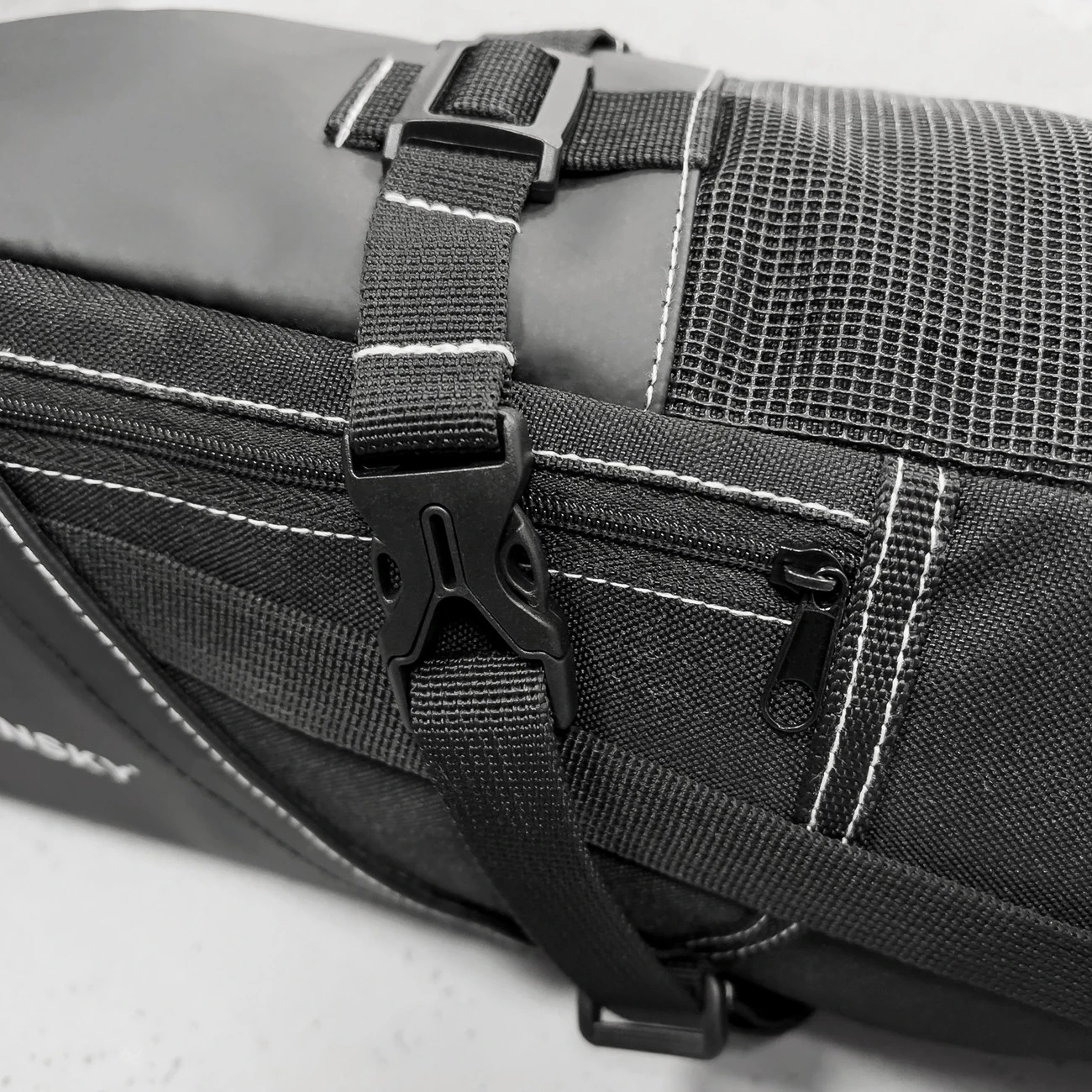 Schnallen und Verschlüsse ermöglichen die Befestigung der Packtasche unter dem Sattel bei vielen Fahrradmodellen (der auf den Bildern sichtbare Spanngurt ist nicht im Set enthalten). Es handelt sich um eine stabile und zuverlässige Lösung, die nicht nur Ihr Hab und Gut ordnungsgemäß schützt, sondern auch das Fahren nicht beeinträchtigt . Also nichts wie los auf Waldwege und Stadtstraßen!