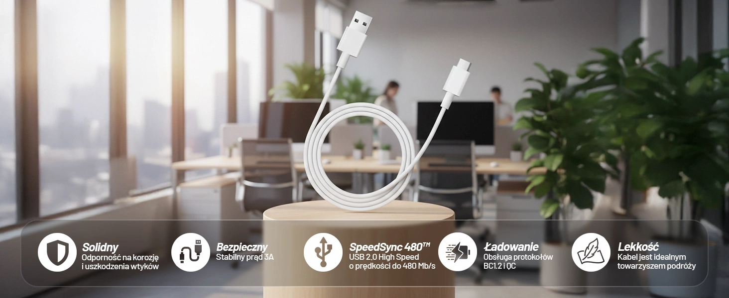 Das Kabel ist extrem stark und langlebig. Die spezielle Beschichtung schützt vor kleineren mechanischen Beschädigungen wie Abschürfungen oder Brüchen. Das gesamte Kabel ist an den bruchgefährdeten Stellen verstärkt.