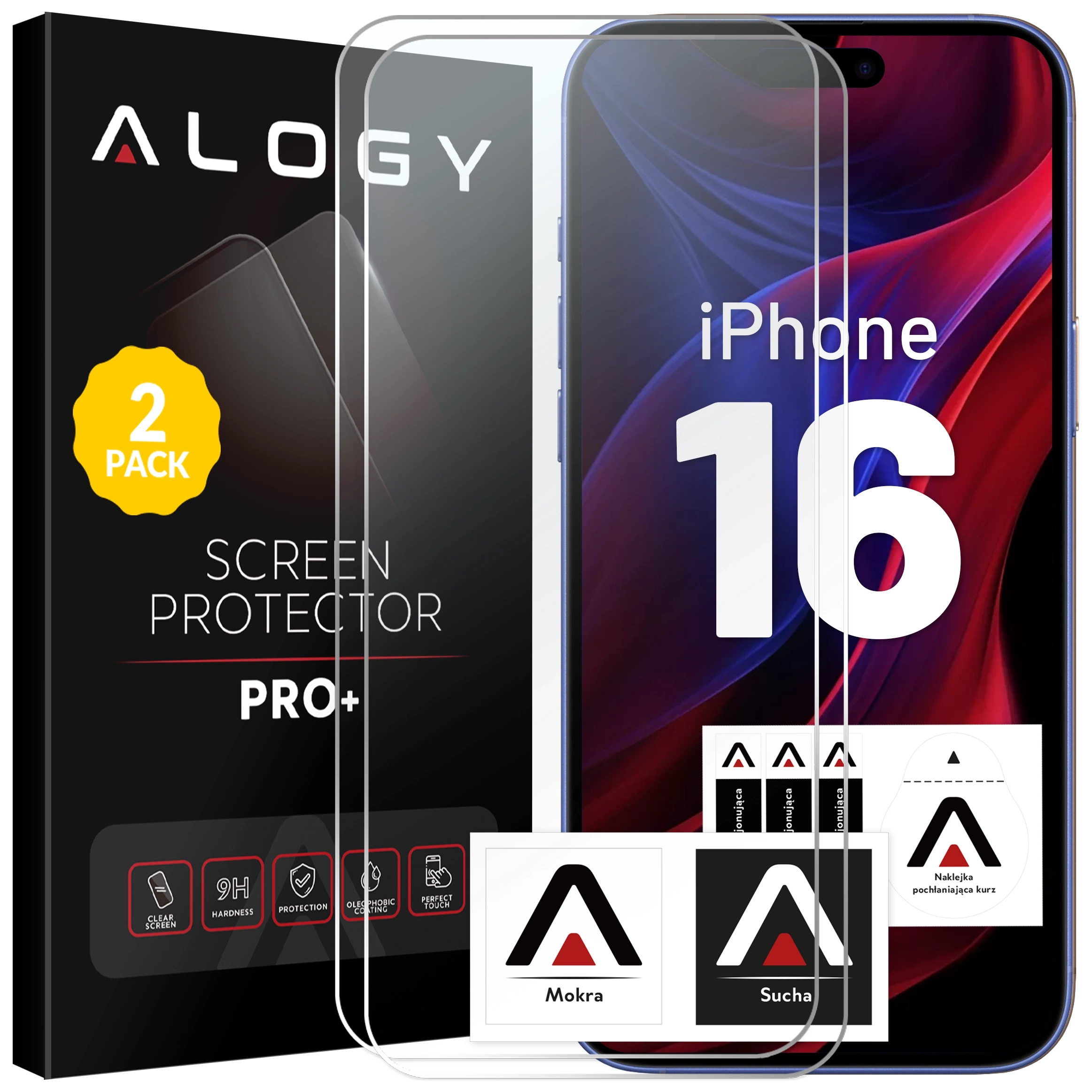 Opinie o 2x Szkło hartowane do Apple iPhone 16 ochronne szkiełko na ekran 9H Alogy Heavy Pro+™️ [2szt]