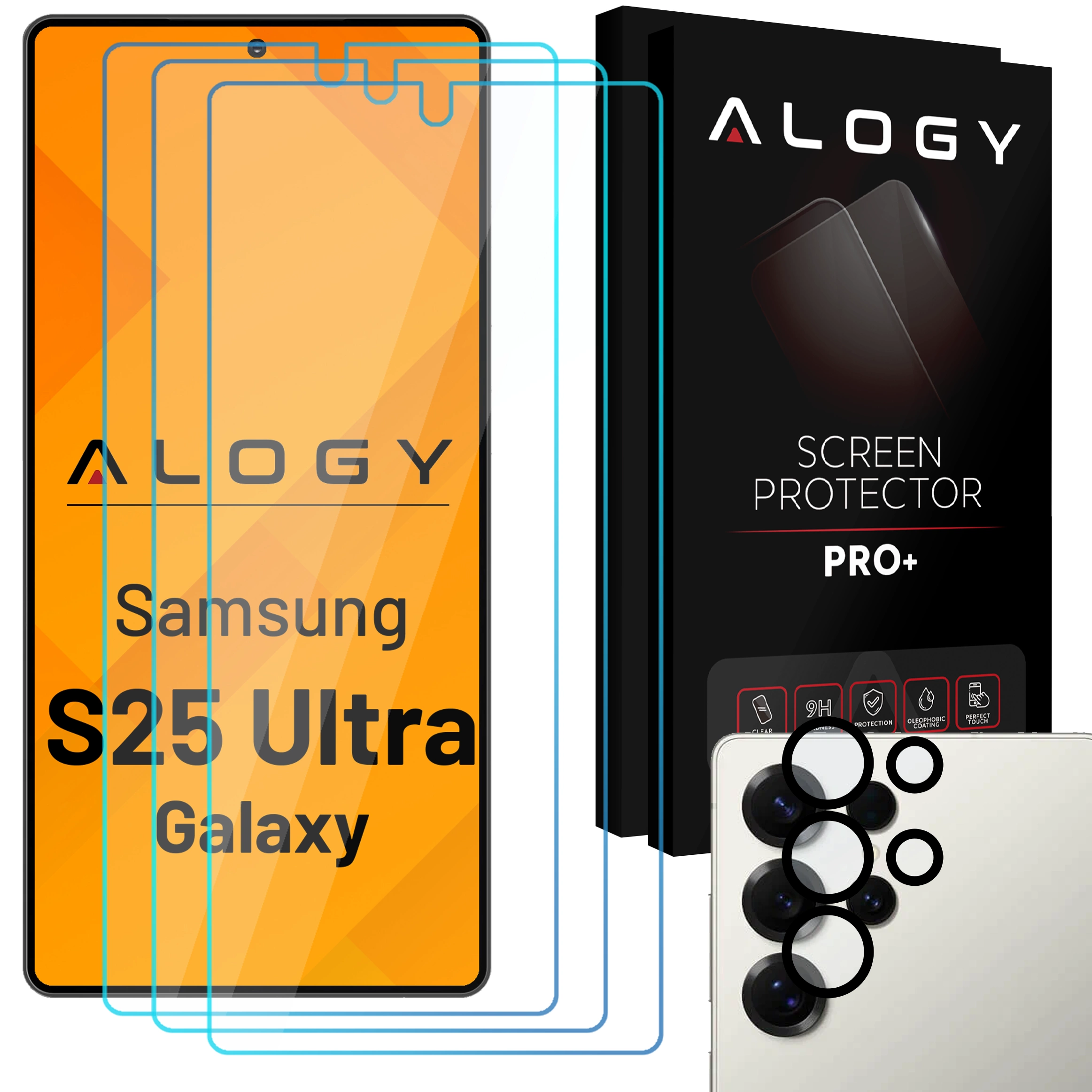 ▶️ Szkło ochronne Alogy GlassGuard Pack™ do Samsung Galaxy S25 Ultra– 3 sztuki na ekran, + ochrona obiektywów