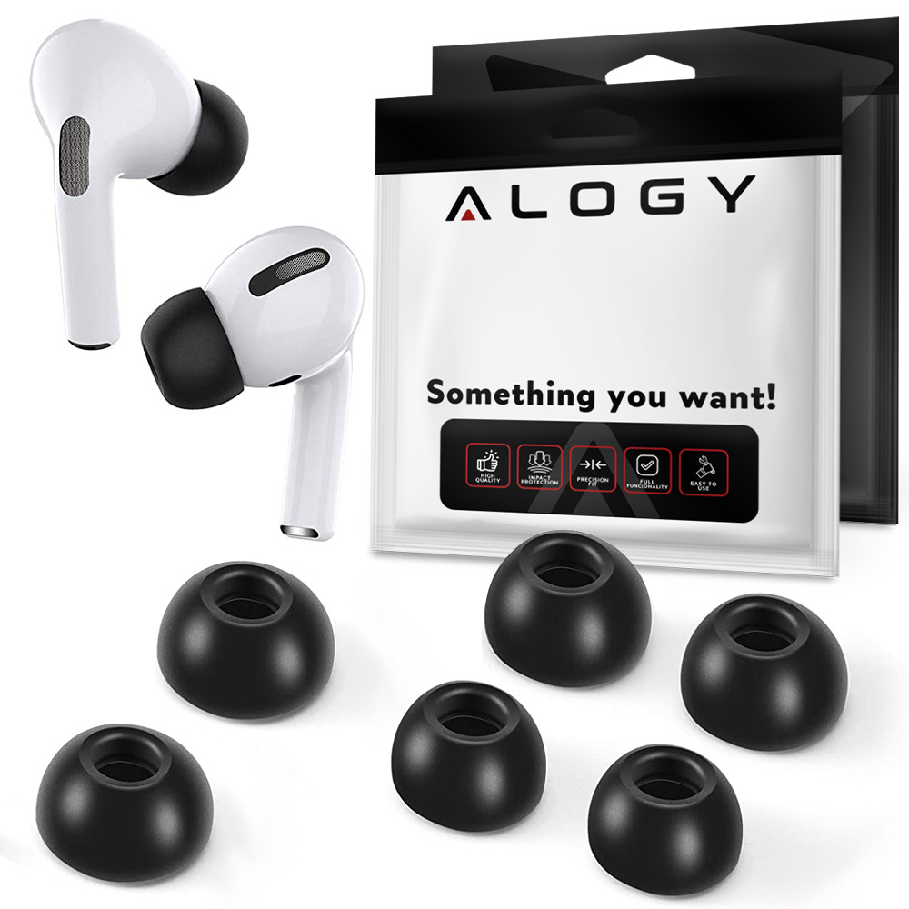 Opinie o 6x Nakładki silikonowe zapamiętujące Alogy S M L do Apple AirPods Pro czarne