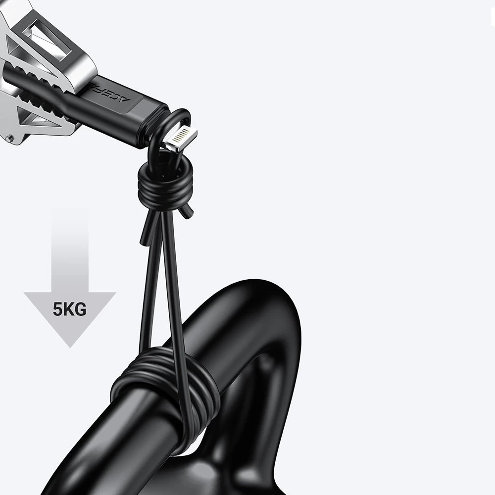 Kabel USB Typ C - Lightning do ładowania i przesyłania danych marki Acefast. Przeznaczony jest do urządzeń marki Apple ze złączem Lightning. Ma długość 120 cm i jest przystosowany do pracy z prądem o obciążeniu 30W i natężeniu 3A. Jest kompatybilny z szybkim ładowaniem Power Delivery. Posiada certyfikat MFI (Maide For iPhone), dzięki czemu telefon nie wyświetli komunikatu o nieoryginalnym akcesorium.