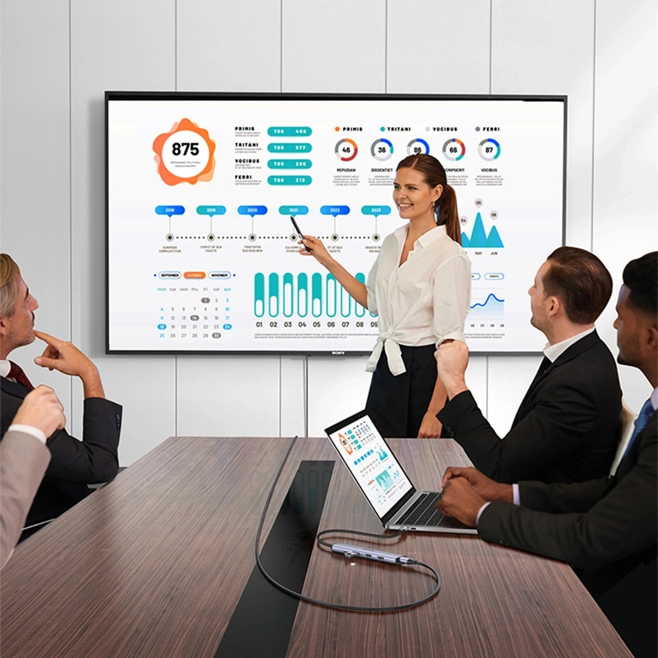 Port HDMI obsługuje rozdzielczość 4K przy 30 Hz, co zapewnia ostre i wyraźne detale w filmach, grach czy prezentacjach. Z Ugreen CM478 możesz prowadzić spotkania lub wyświetlać treści w najwyższej jakości.