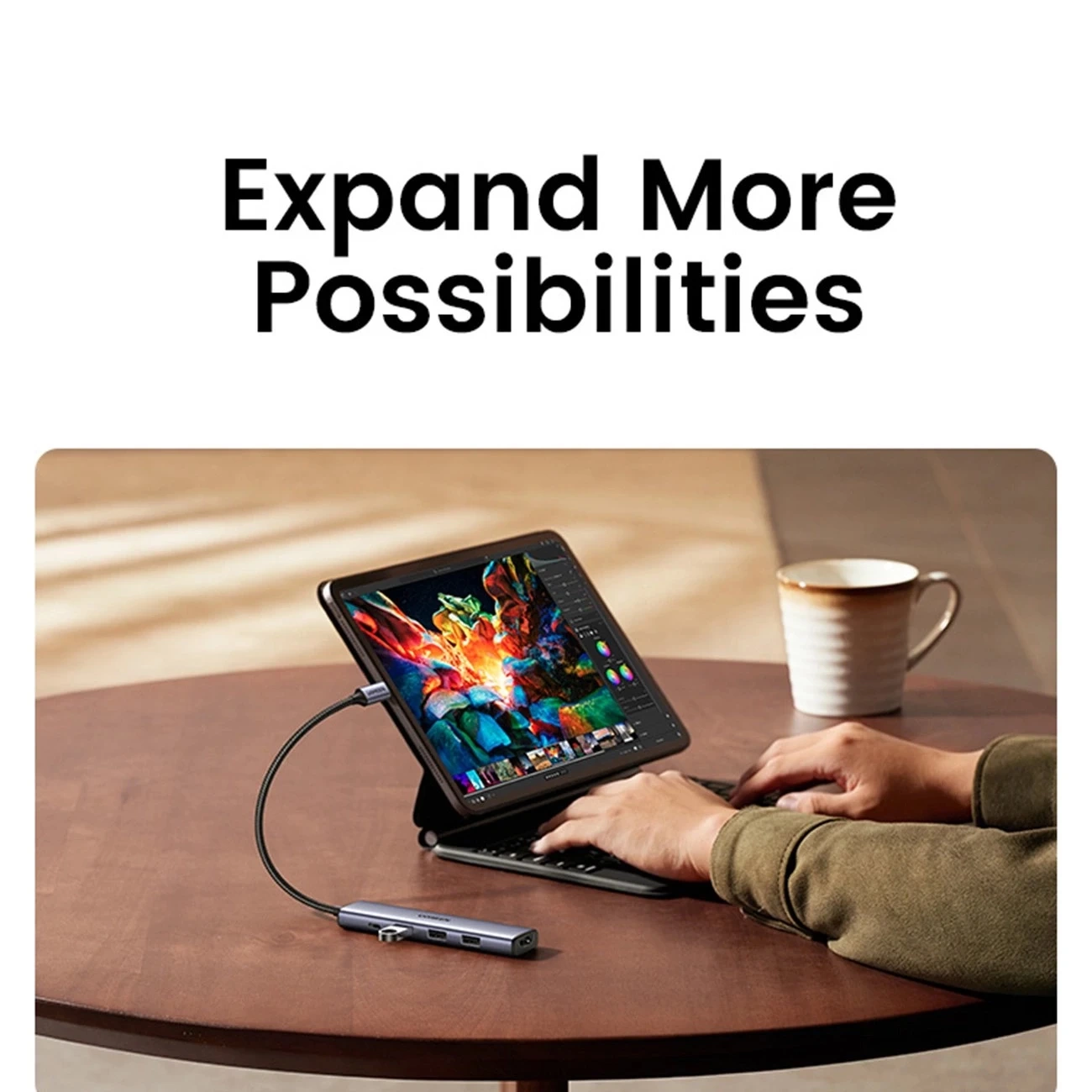 Twój laptop ma tylko jedno złącze USB-C? Adapter Ugreen CM478 rozwiązuje ten problem, zamieniając jedno wejście w aż cztery dodatkowe porty: HDMI 4K, USB-A 3.0, 2x USB-A 2.0 oraz zasilanie USB-C. Kompaktowy, elegancki i funkcjonalny – idealny do pracy, nauki i rozrywki.