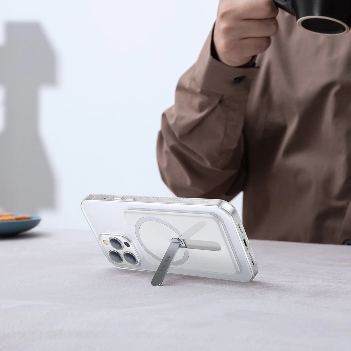 Eleganckie, przezroczyste etui, które nie tylko chroni Twój iPhone przed uszkodzeniami, ale także współpracuje z ładowarką bezprzewodową MagSafe – oto Baseus Magnetic Phone Case. W etui została wbudowana specjalna metalowa podstawka, którą możesz obrócić w dowolnym kierunku, aby ustawić telefon w pionie lub poziomie. Obudowa z wytrzymałego TPU posiada poduszki powietrzne w narożnikach i antypoślizgowe krawędzie, dzięki czemu telefon będzie chroniony przed skutkami upadków.