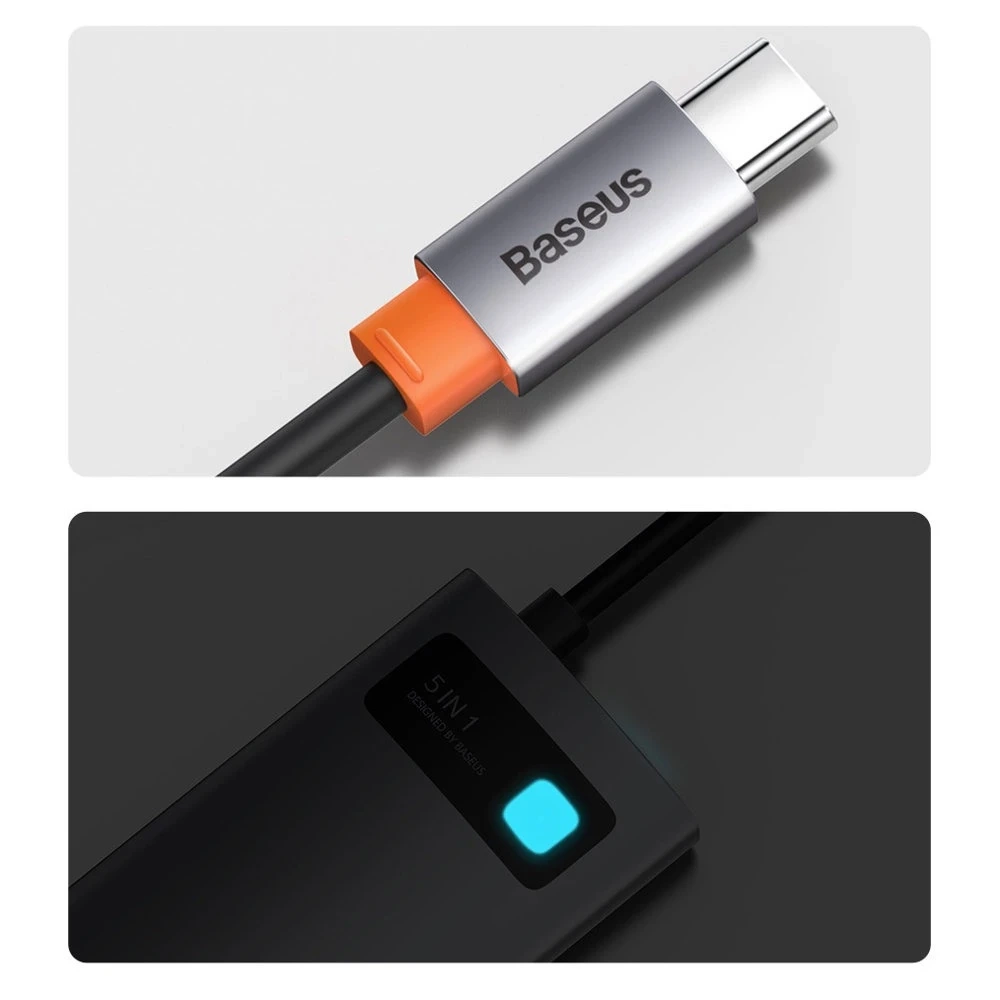 Baseus Metal Gleam Series multifunkcjonalny HUB USB 5w1 USB Typ C PD 100W HDMI szary (WKWG020013)