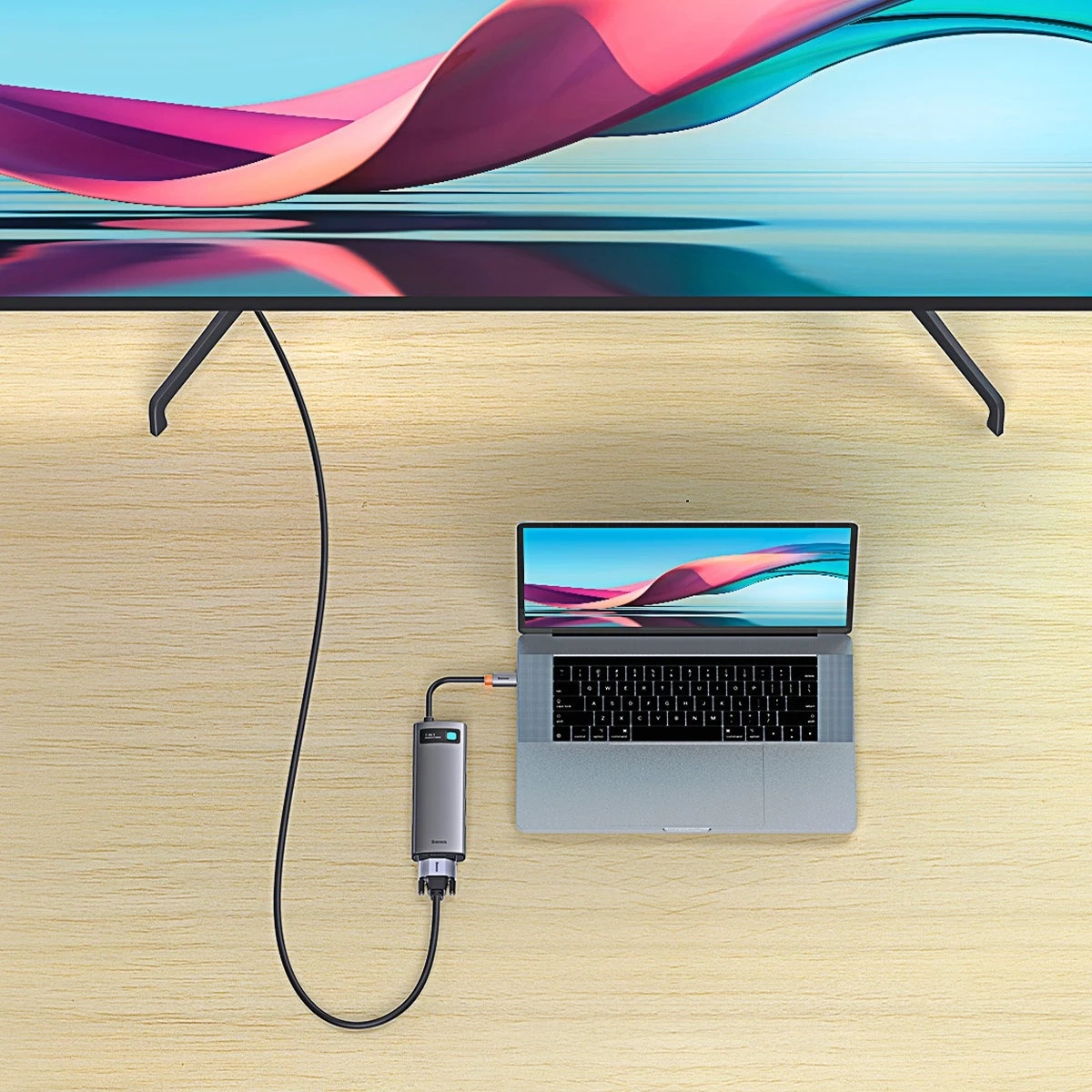 Gadżet od marki Baseus pozwoli Ci na w pełni swobodną pracę lub zabawę. Wszystko dzięki dużej liczbie dostępnych portów oraz gniazd. Nowe laptopy często nie mają wystarczającej ilość gniazd USB lub HDMI. Dzięki HUBowi Baseus nie musisz się martwić ich brakiem. Dodatkowo znajdziesz w nim port Ethernet RJ-45 oraz VGA.