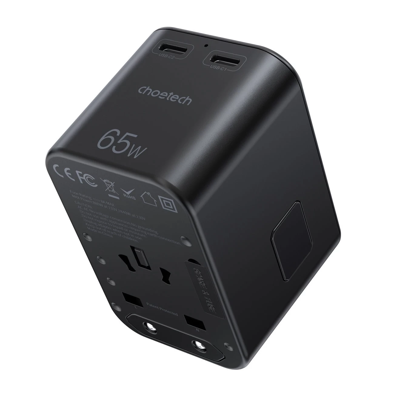 • Choetech szybka uniwersalna ładowarka sieciowa podróżna GaN 2 x USB Typ C / USB 65W Power Delivery czarny (PD5009-BK)