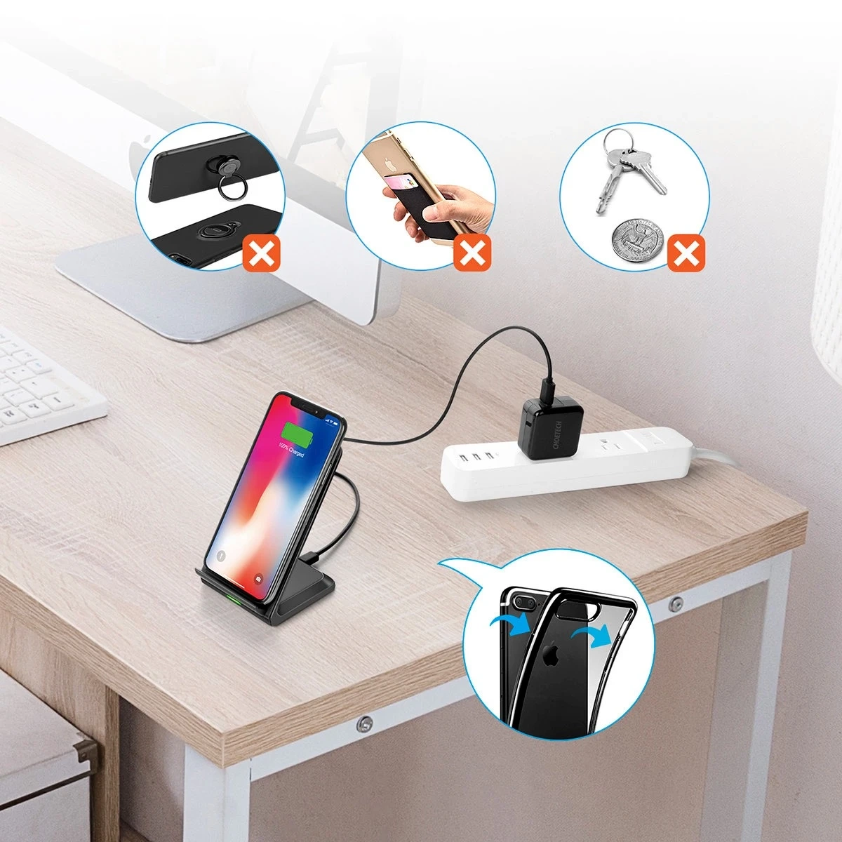 Używaj ze wszystkimi telefonami i urządzeniami z obsługą technologii szybkiego ładowania bezprzewodowego Qi Masz swobodę ładowania telefonu ustawionego w dowolnej pozycji, poziomo lub pionowo Podwójna cewka umożliwia Ci szybkie i stabilne ładowanie bezprzewodowe z efektywnością rzędu 72% Zyskujesz gadżet, który jest solidne wykonany, designerski i solidny Antypoślizgowe elementy gwarantują, że Twój smartfon nie przemieści się VIDEO