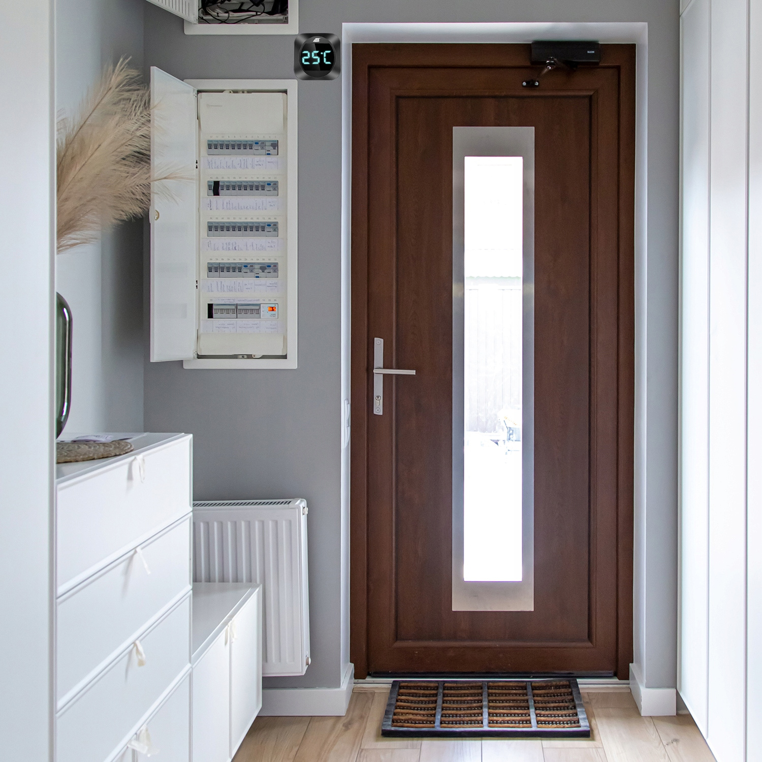 ⭐ Dzwonek dodatkowo wyposażono w wyświetlacz LCD, na którym wyświetla się temperatura. Możemy ustawić wyświetlanie temperatury w °C / F.