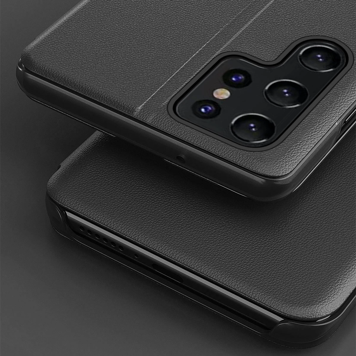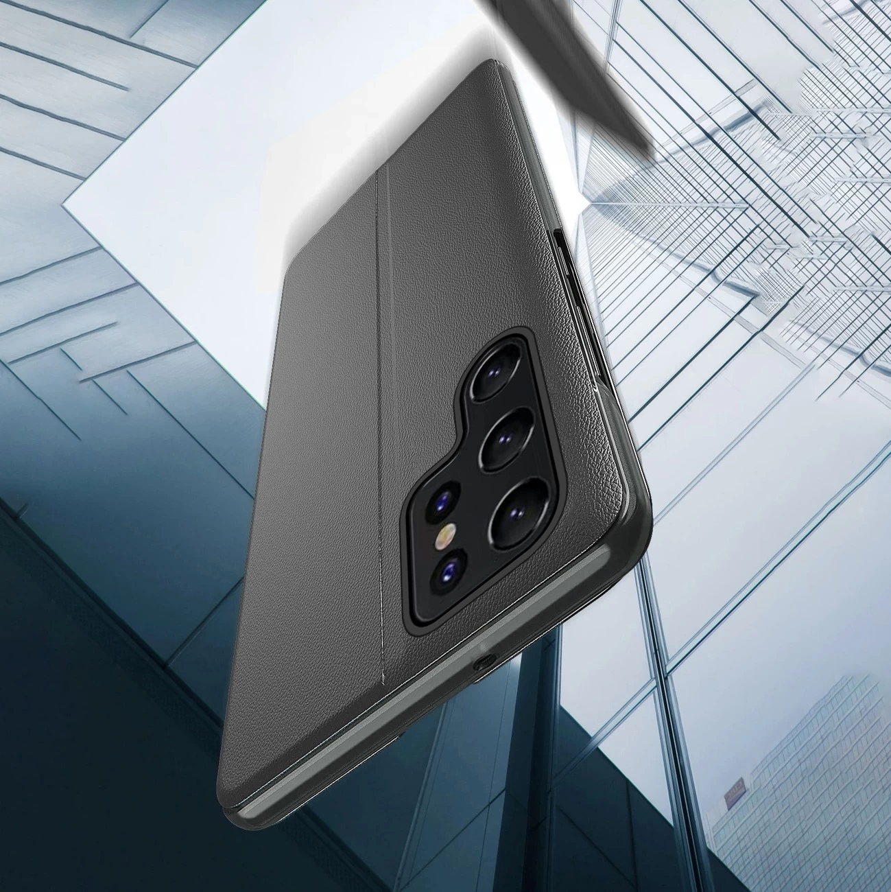 • Eco Leather View Case elegancki futerał etui z klapką i funkcją podstawki Samsung Galaxy S22 Ultra niebieski