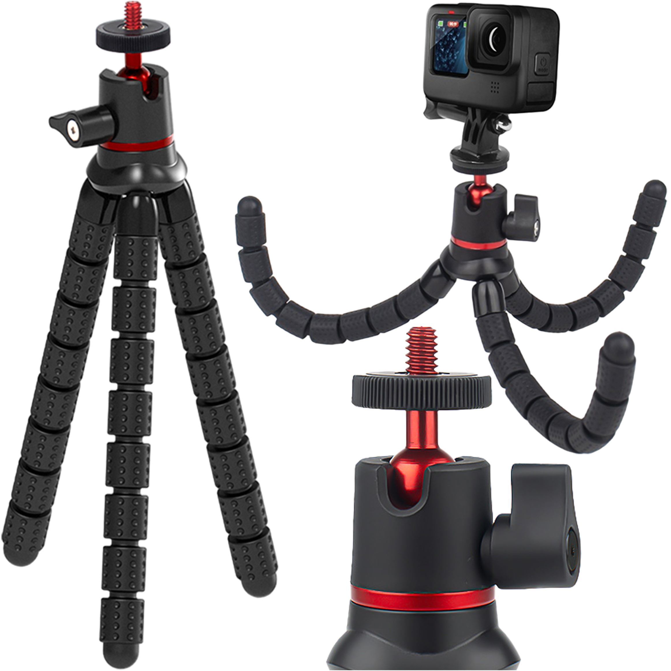 Tripod, elastyczny statyw z mocowaniem 1/4 do kamer i aparatów + adapter na statyw