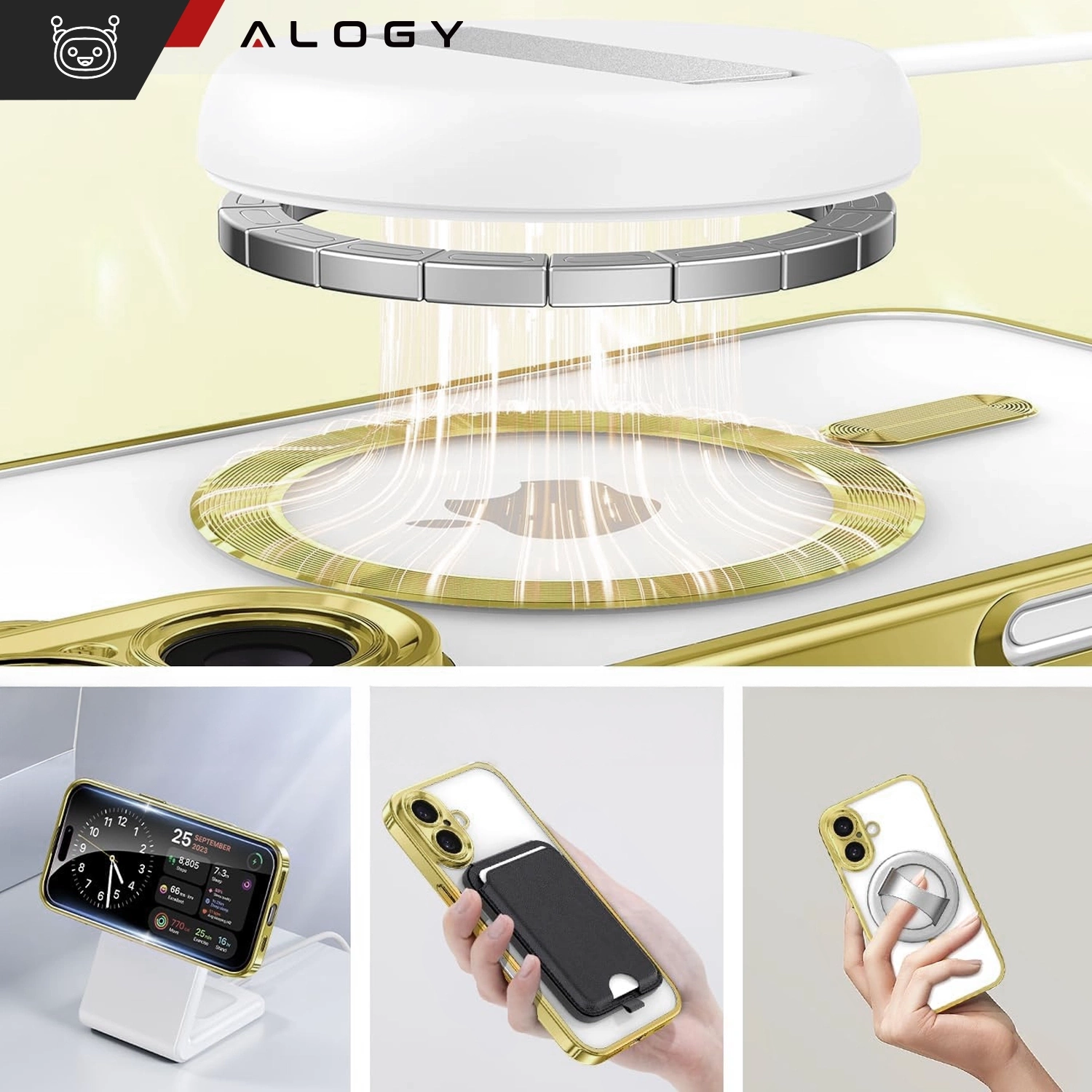 Etui Alogy MagSafe Glamour Luxury Case dedykowane do Apple iPhone 16 Plus oferuje ochronę klasy premium i perfekcyjne dopasowanie dzięki elastycznej ramce z poliuretanu. Złote wykończenie nadaje elegancji, skutecznie chroniąc aparat i obiektywy, a smukły design nie pogrubia telefonu.