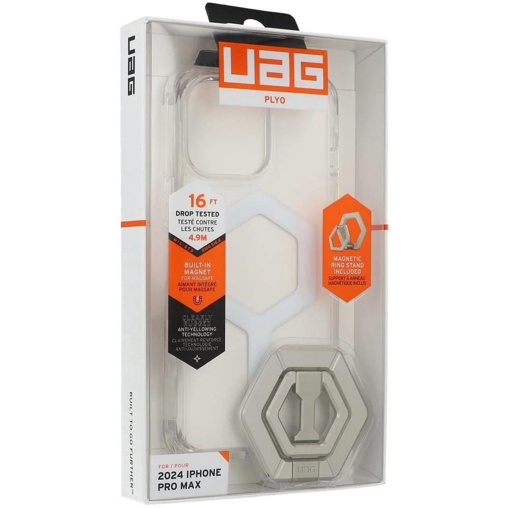 Etui UAG Plyo Ring Stand do iPhone 16 Pro Max w kolorze ice-white / titanium to połączenie nowoczesnego designu , legendarnej ochrony UAG oraz wygody użytkowania dzięki wbudowanemu pierścieniowi.