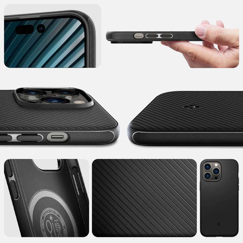 Etui Spigen Mag Armor do iPhone 14 Pro Max jest wykonane z wysokiej jakości włókien aramidu, dzięki czemu jest twardy i sztywny.