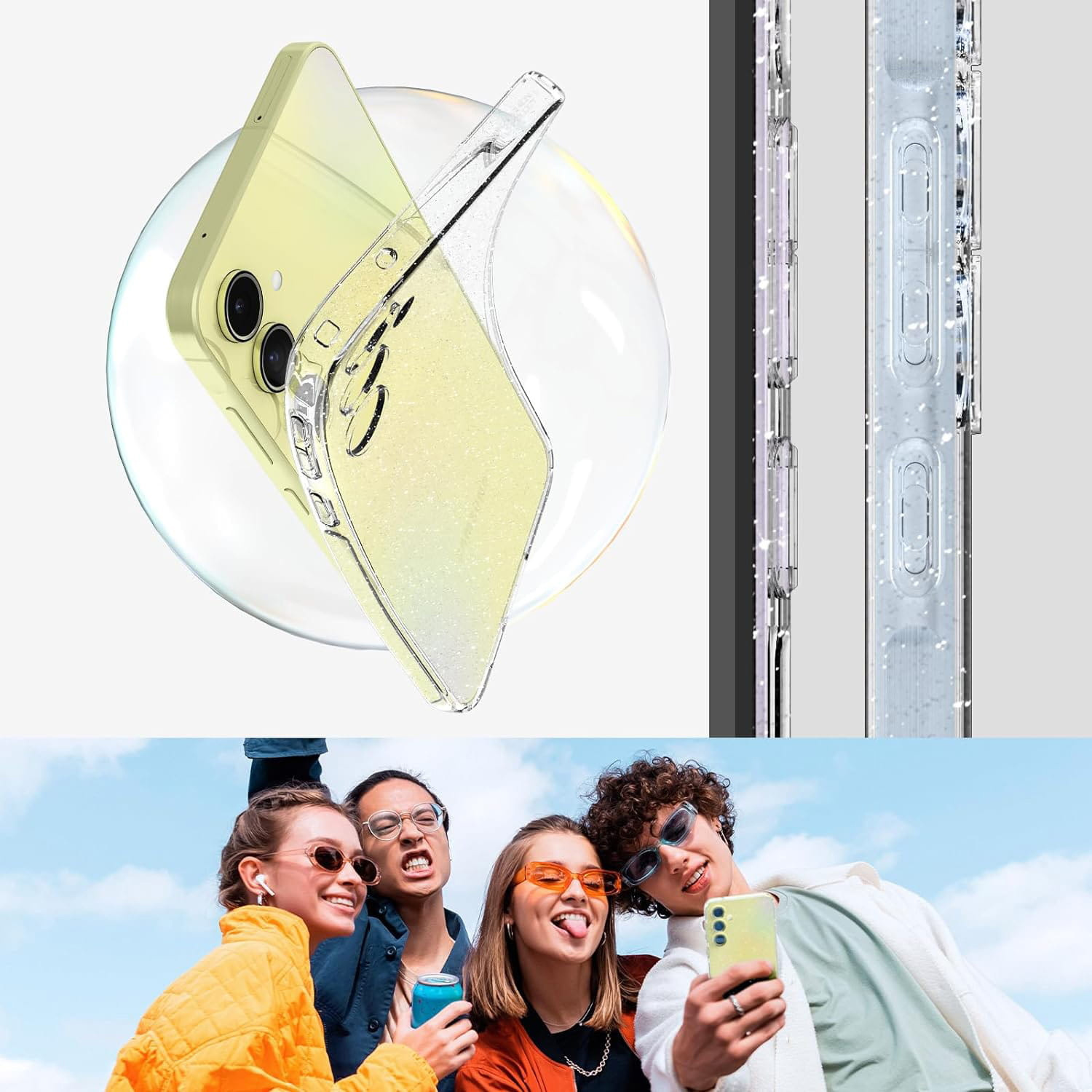 Brokatowe etui od marki Spigen z serii Liquid Crystal Glitter to minimalistyczny i transparentny pokrowiec, ukazujący wygląd Twojego telefonu, wzbogacony o połyskujący brokat, który efektownie mieni się pod różnym kątem.