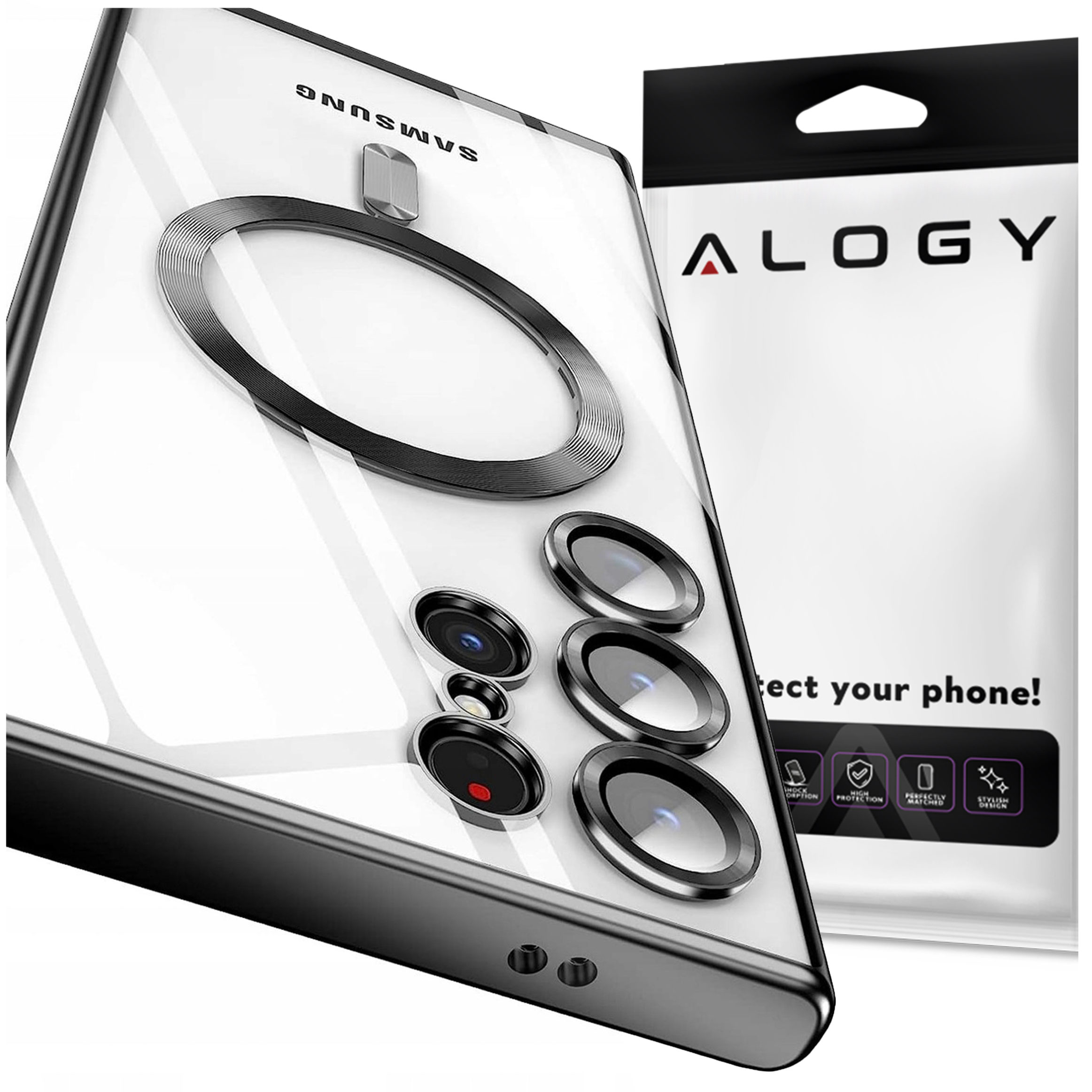 Opinie o Etui do Samsung Galaxy S24 Ultra Mag Safe Glamour Case Ring obudowa ochrona aparatów Alogy Czarne przezroczyste