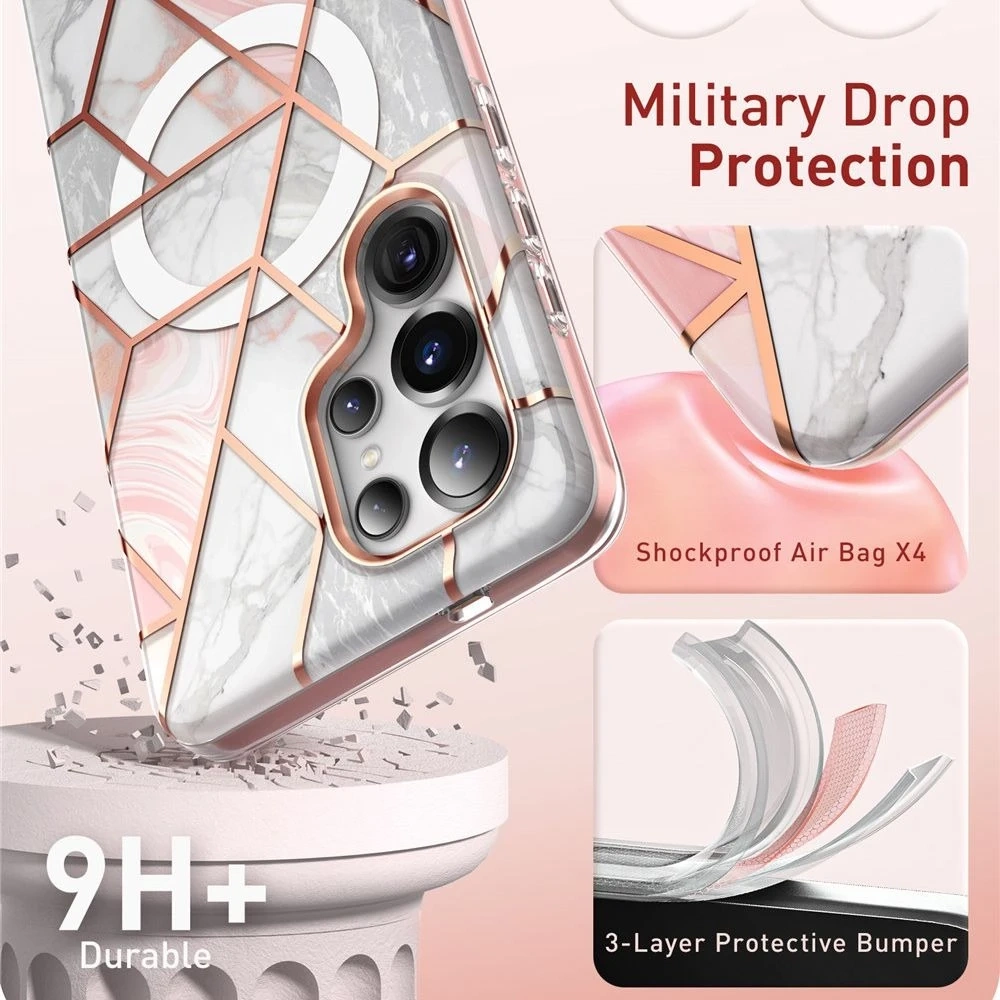 Etui do Samsung Galaxy S25 Ultra Supcase Cosmo Mag MagSafe Marble Supcase Cosmo Mag MagSafe to eleganckie, smukłe etui zapewniające ochronę zgodną z MIL-STD 810G. Posiada wzmocnioną konstrukcję z TPU i poliwęglanu oraz zintegrowaną szybę ochronną. Wbudowany pierścień MagSafe umożliwia szybkie ładowanie i mocowanie akces Cena katalogowa